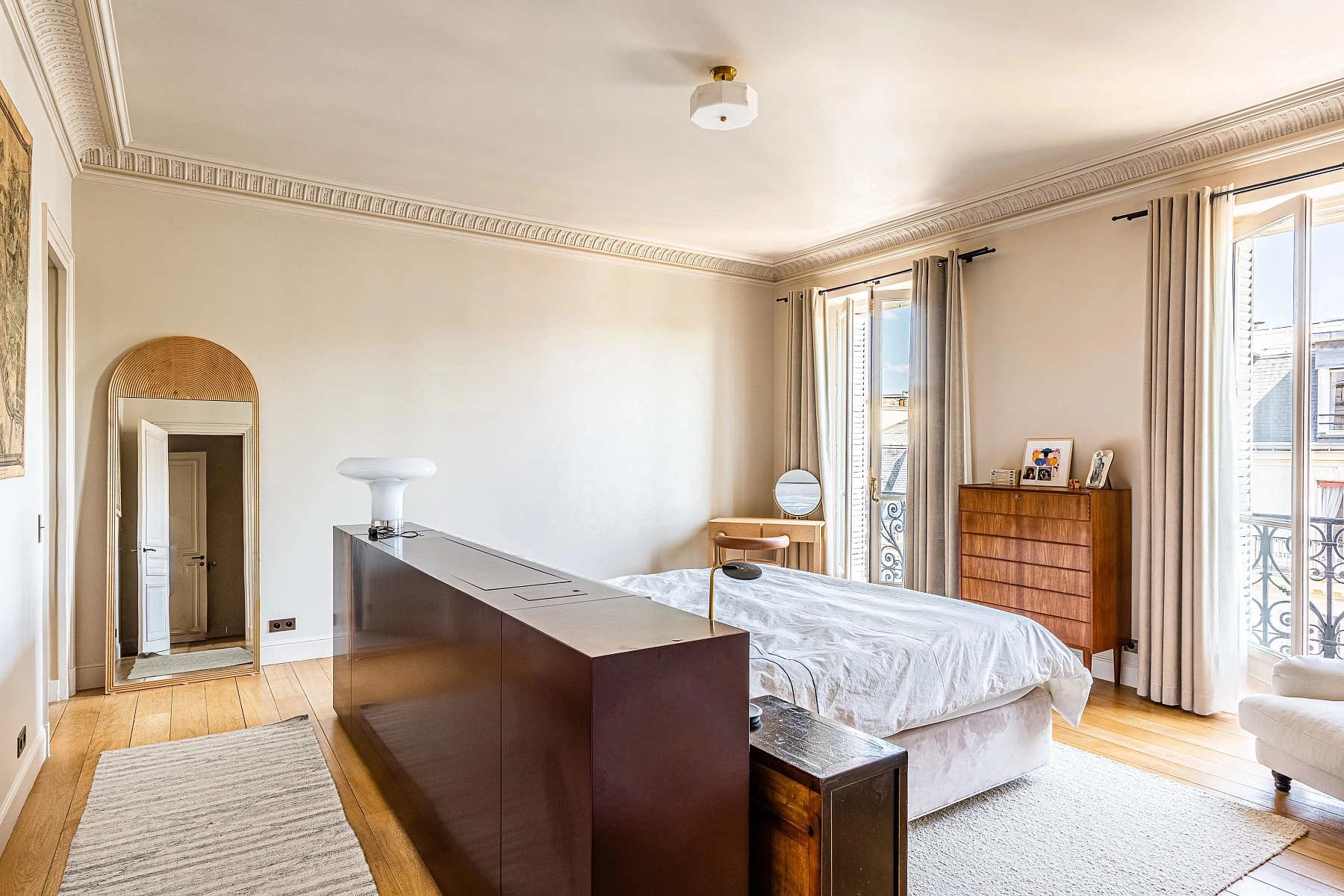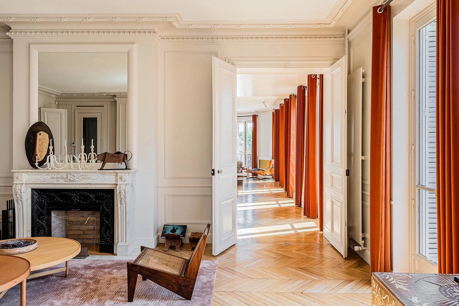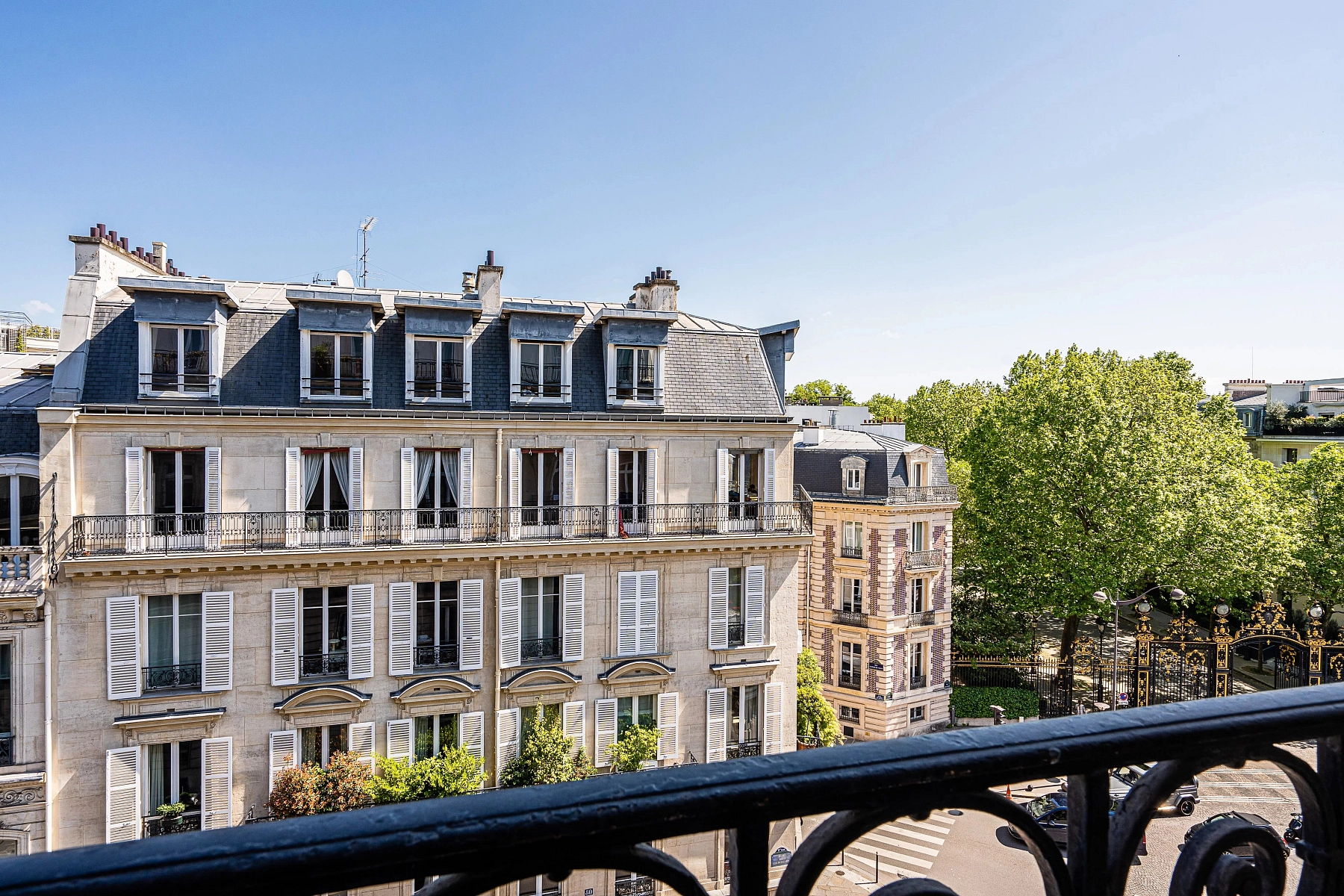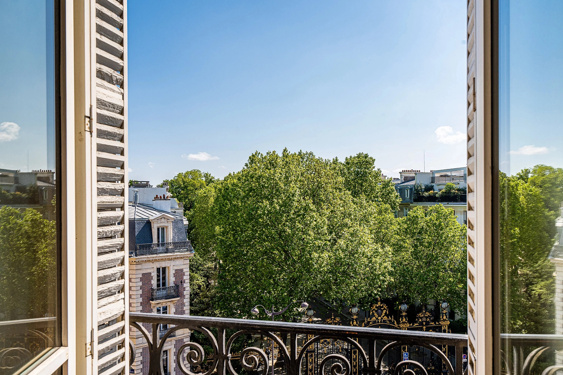 This nearly 400 m² apartment is located on the 4th floor of a distinguished early 20th-century stone building. Situated on a prestigious Parisian address, the apartment offers views of the iconic wrought-iron gates of Parc Monceau and the elegant Avenue Hoche.