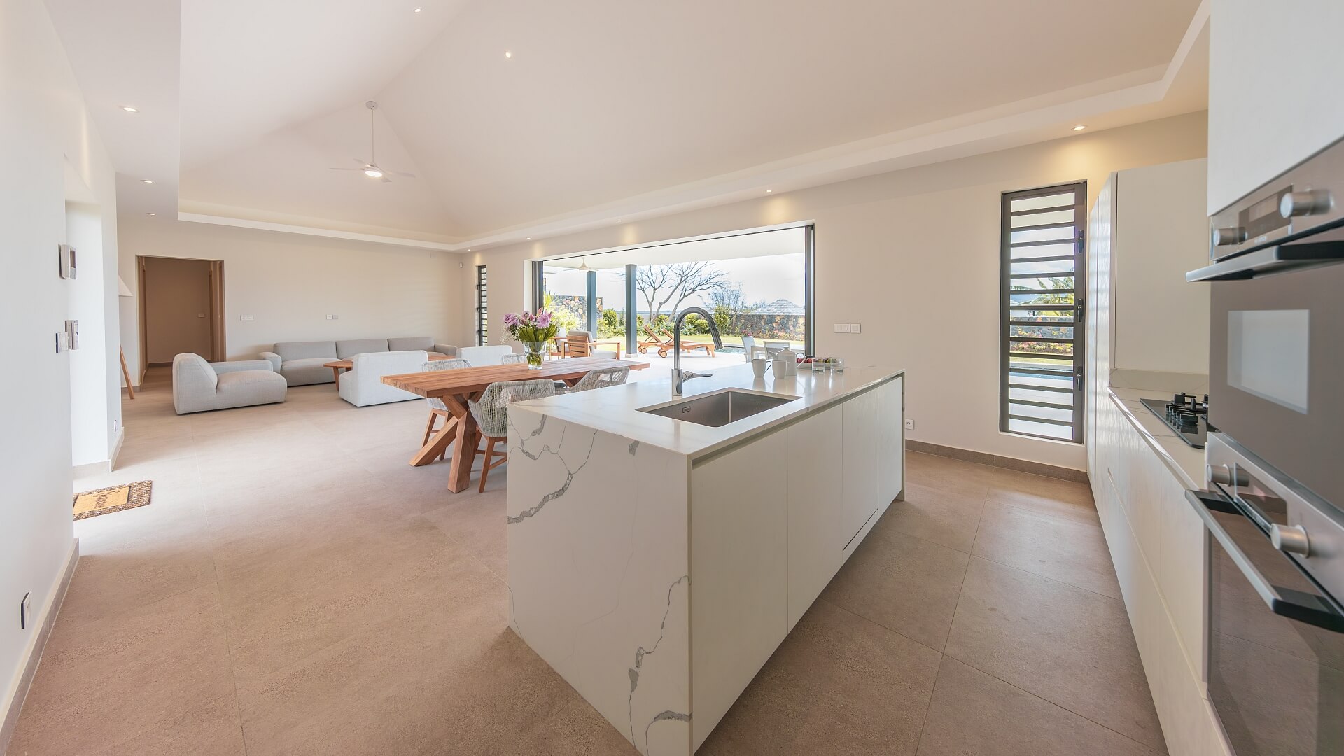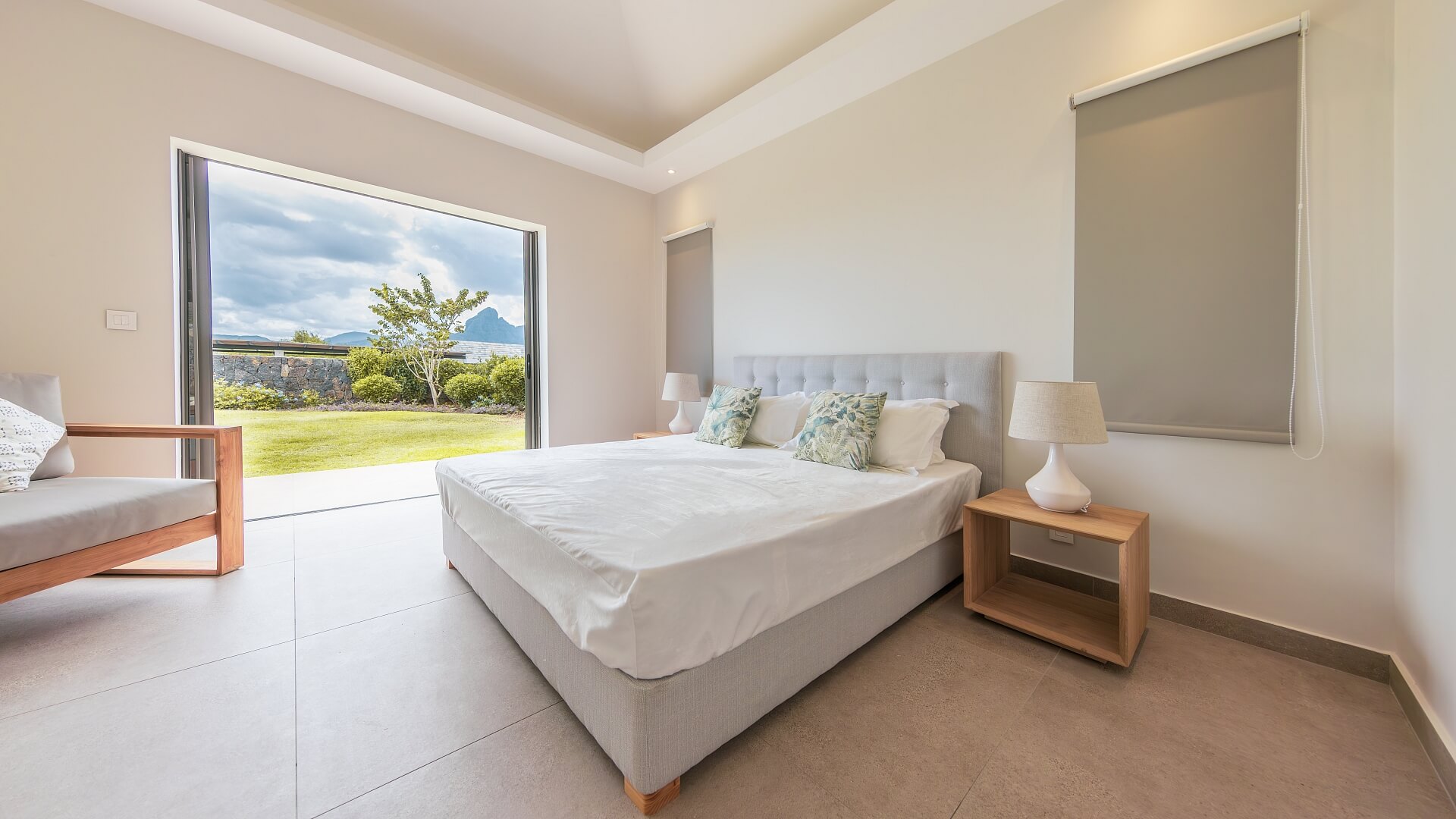 The sleek minimalist architecture of this modern villa offers its residents the comfort of 4 en-suite bedrooms and a private pool with stunning views of the surrounding mountain ranges. It is part of an attractive residential complex on the west coast of Mauritius. The purchase of the property also entitles the owner to a residence permit.