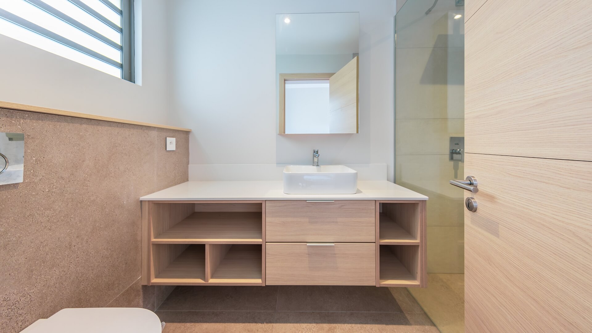 The villa’s design elegantly blends modern style with the beauty of its tropical surroundings, further enhanced by a 53 m² light-slate swimming pool. Technological amenities include air conditioning and a security system.