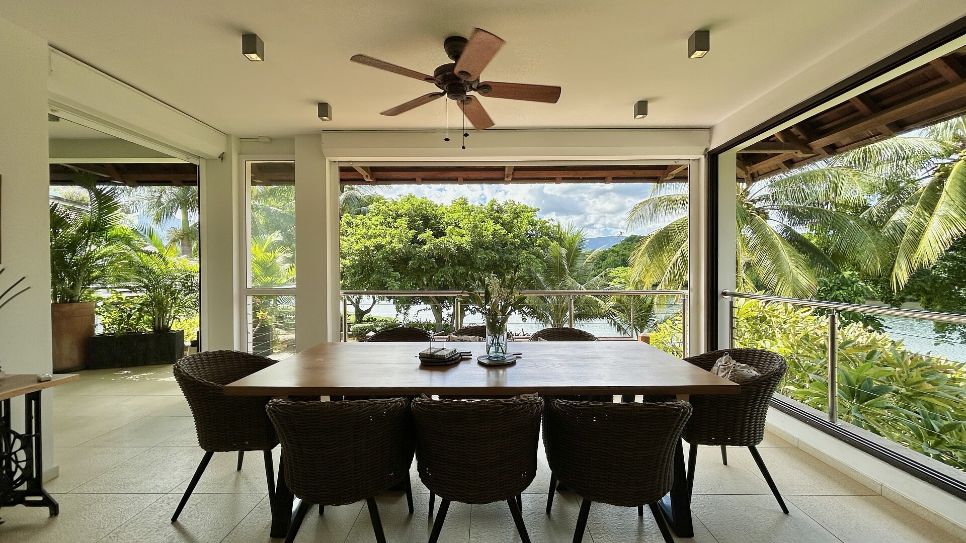 A unique 4-bedroom villa is located just steps from the beach in the popular resort town of Tamarin on the west coast of the island of Mauritius in the Indian Ocean.