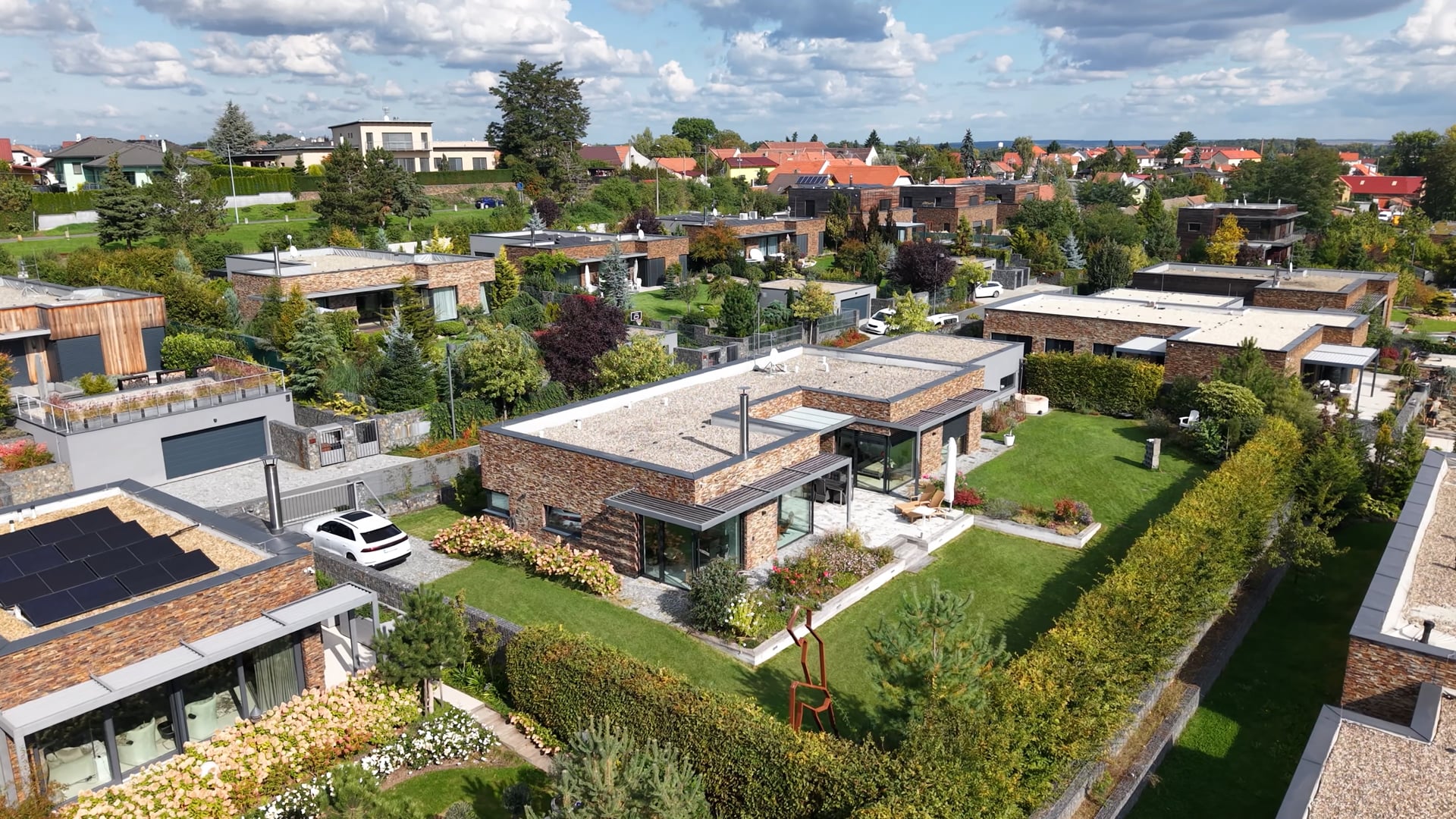 This modern, pleasantly bright family house with direct views of a beautifully landscaped garden is part of an exclusive residential villa project located adjacent to a golf resort on the eastern outskirts of Prague.