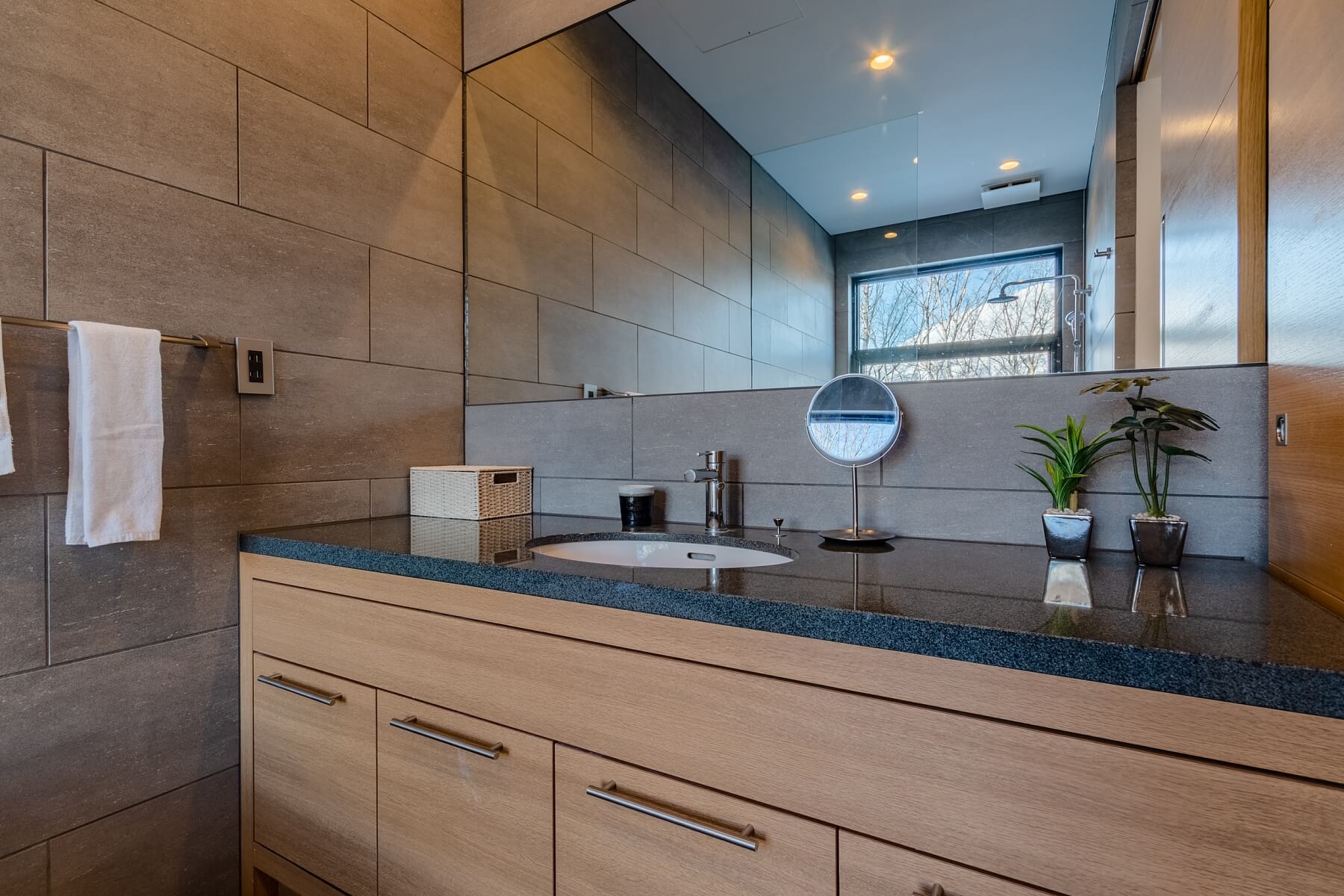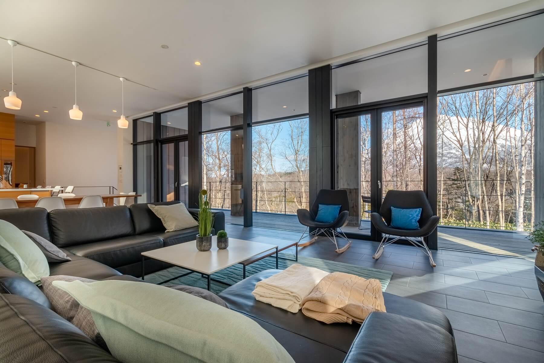 Yanagi House is situated at the end of a quiet cul-de-sac with minimal traffic, just a few minutes from ski lifts, renowned restaurants, and après-ski facilities in the Hirafu area. Surrounded by a peaceful birch forest, the property directly borders a municipal park of 2,363 m², expanding the space for relaxation and leisure while ensuring a serene natural environment.
