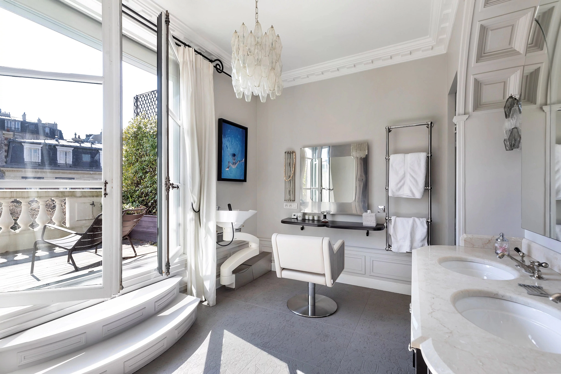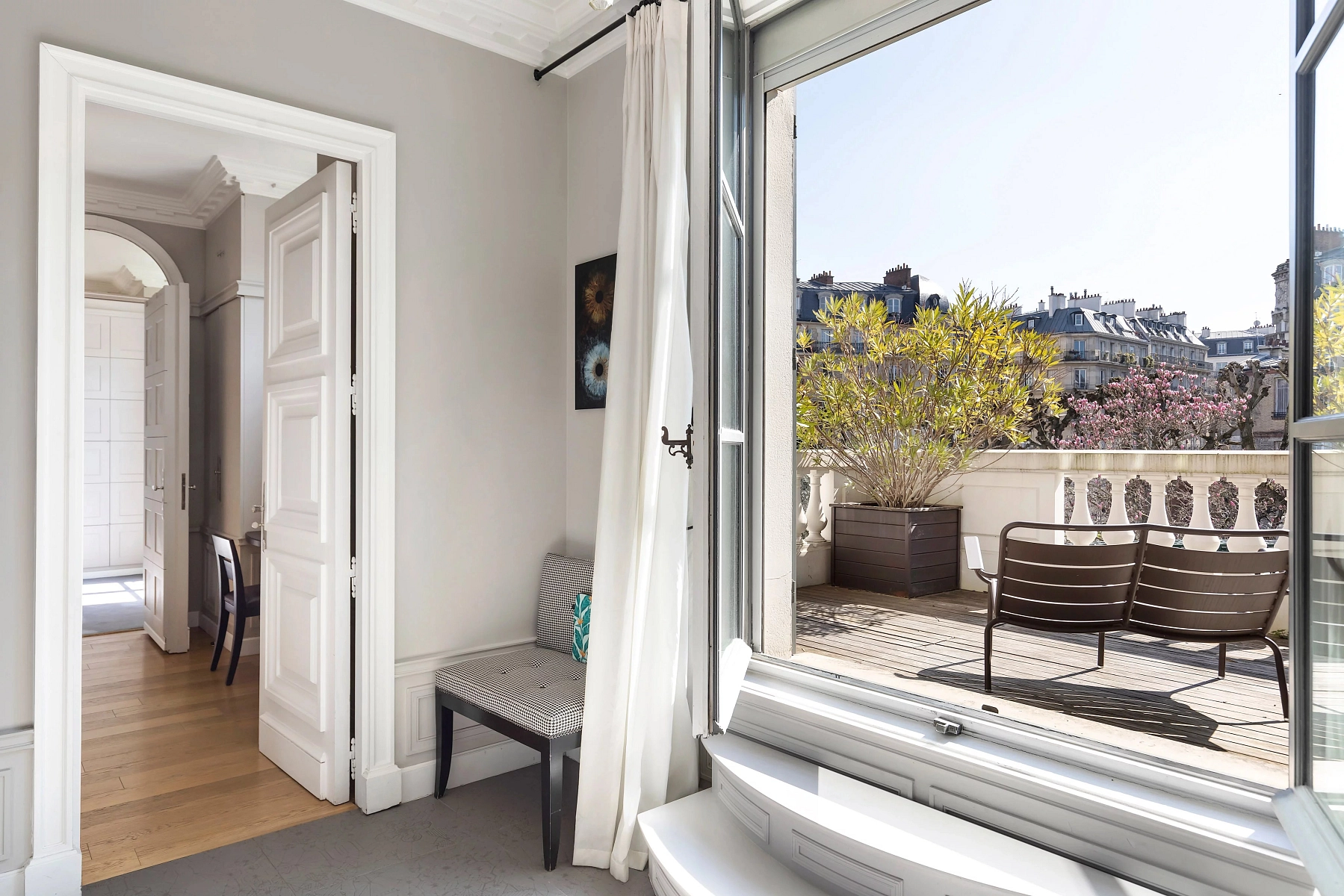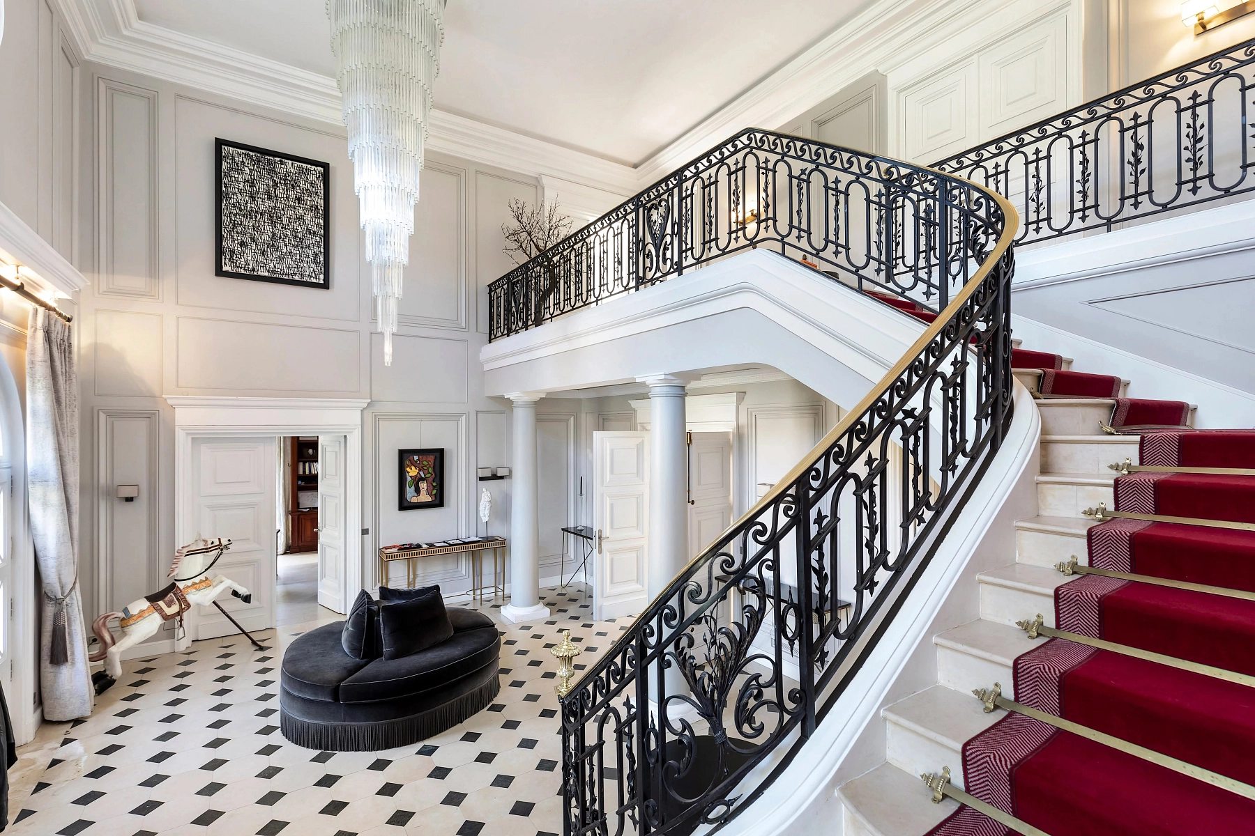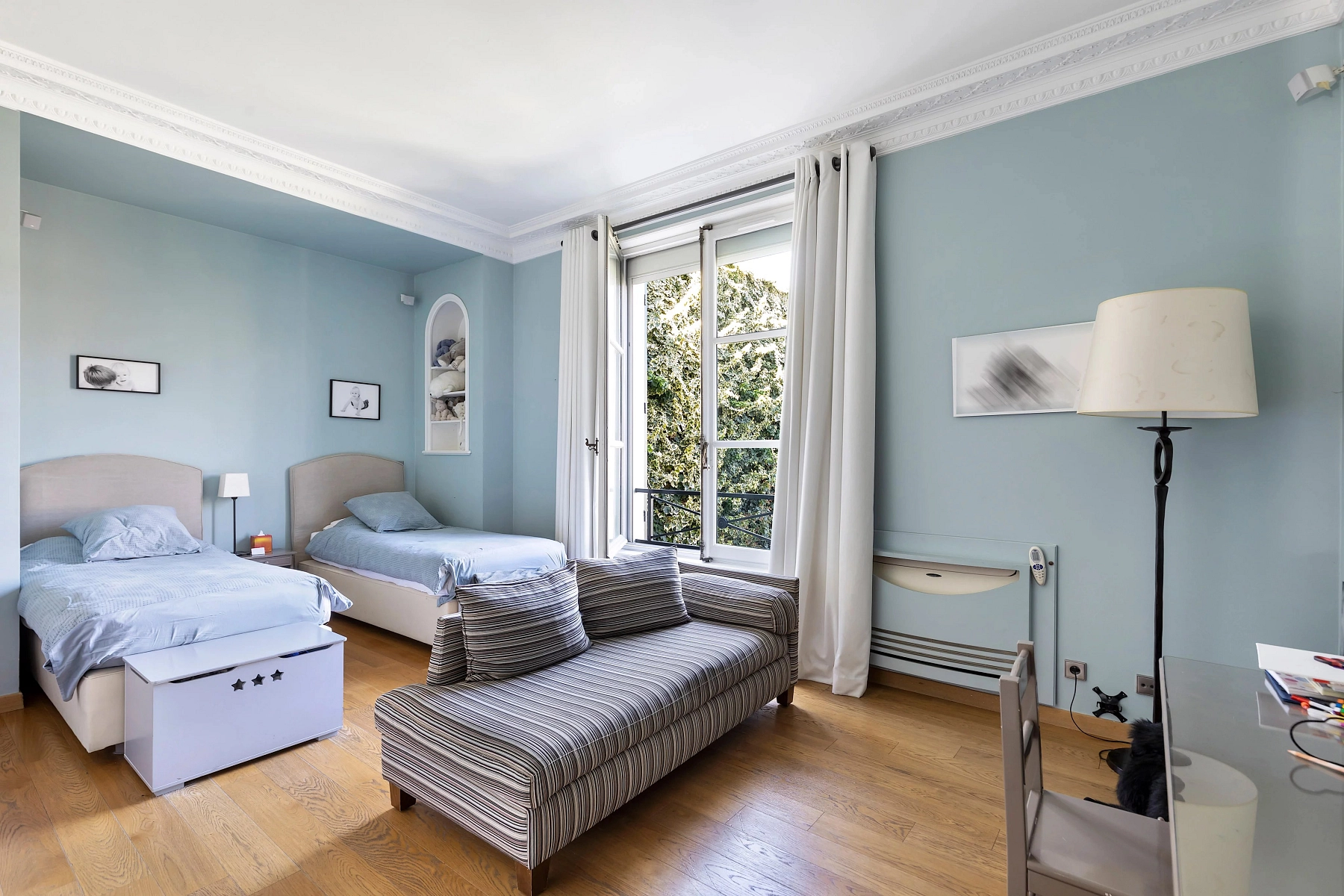 The exceptionally secure Villa Montmorency enclave, with strictly controlled access, evokes the charm of the Normandy countryside and a tranquil retreat in western Paris. This exclusive micro-location, situated in the 16th arrondissement, is home to many prominent figures, including actors, business magnates, and politicians. Nearby Avenue Mozart offers extensive shopping and a range of services, while the landscaped Bois de Boulogne park and the Auteuil racecourse are also close by.