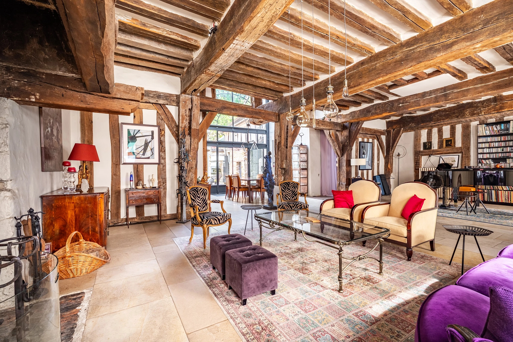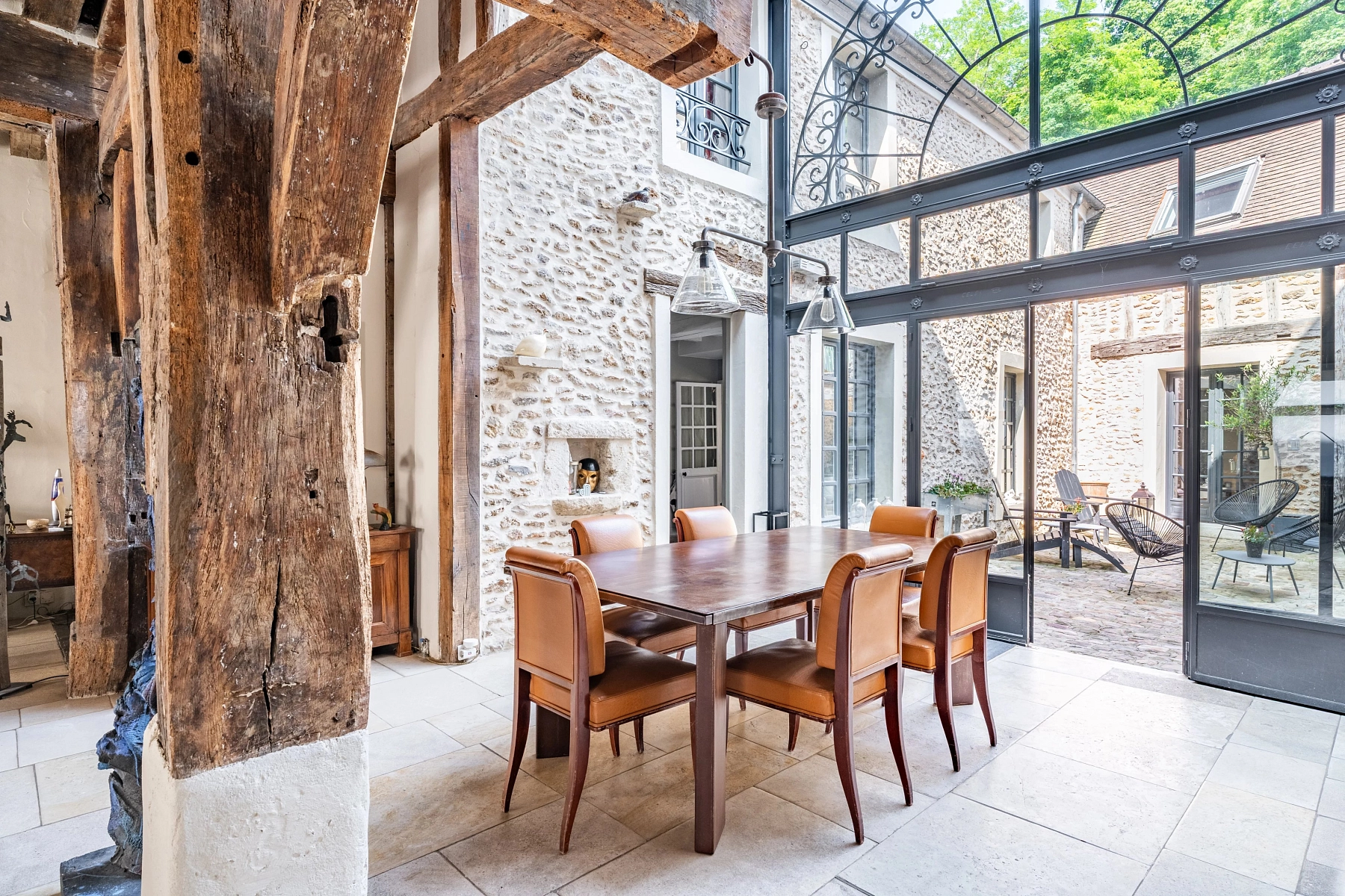 A 16th-century house with a basement, fully renovated in an authentic style, offers the privacy of a walled garden right in the center of the town of Montfort l’Amaury, approximately an hour’s drive west of Paris.