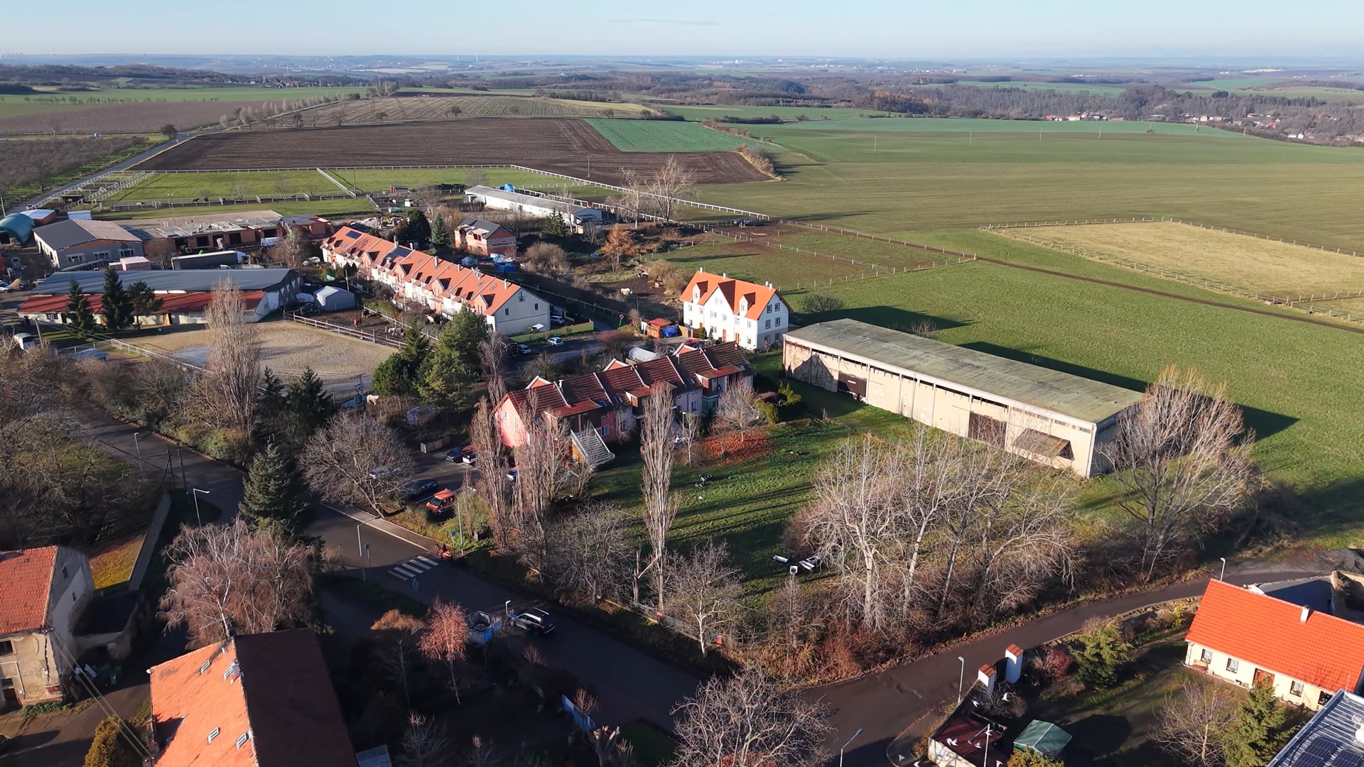 This building plot with a total area of 2,412 m2, with an approved plan for the construction of a family home or farmstead including facilities for processing and selling products is located in the central part of the village of Holubice in the Prague-West district.