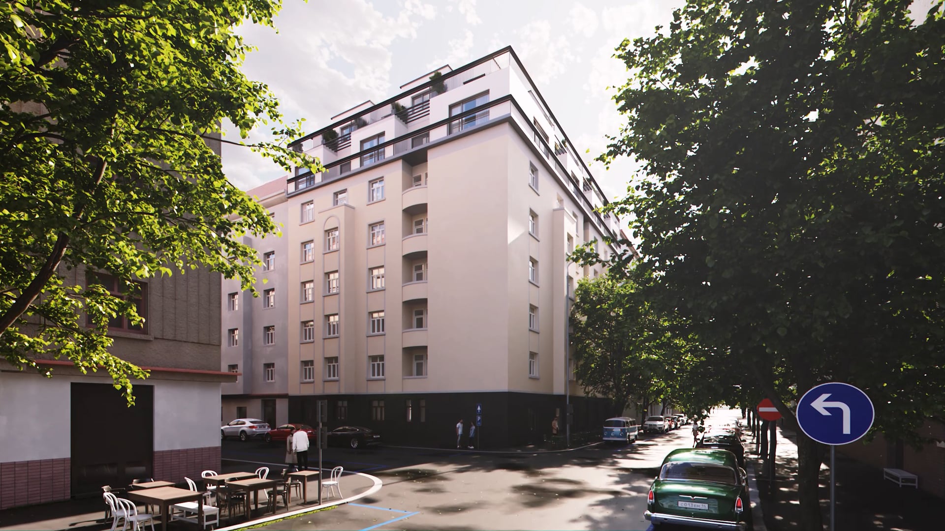This project of comfortable apartments full of daylight and terraces offering views of the rooftops of Žižkov or the surrounding districts of KarlÃn and Vinohrady is currently being created in a corner building with an extension that stands in the upper part of Žižkov. This unique neighborhood consists of traditional apartment buildings, which are gradually being renovated and supplemented with modern residential blocks with landscaped greenery and a range of services for new residents.