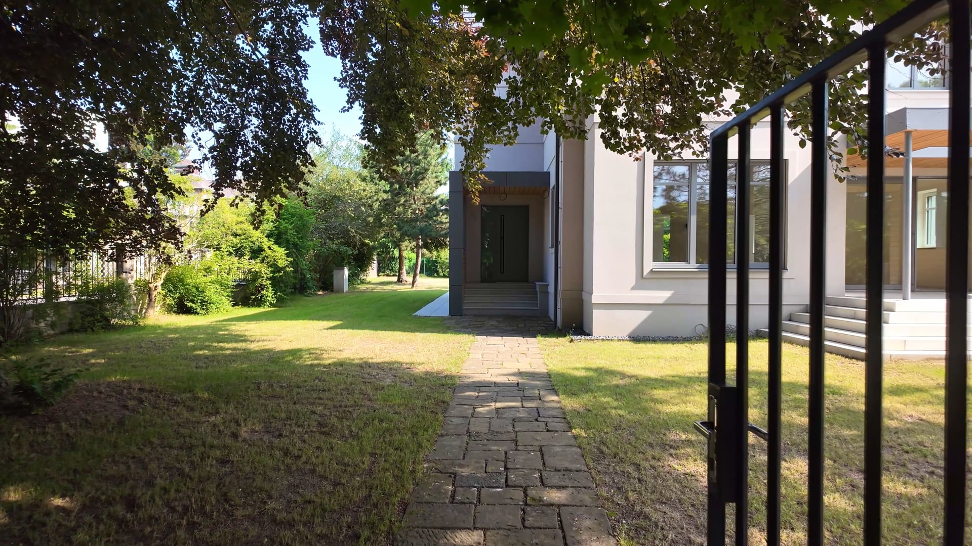 Smart home system, hardwood oak parquet floors, large-format tiles, wood-aluminum windows with exterior blinds, oak staircase, security entry door with fingerprint access, high frameless interior doors, underfloor heating throughout, heat pump, security system, wiring for air-conditioning and sauna. A garage and three parking spaces are available.