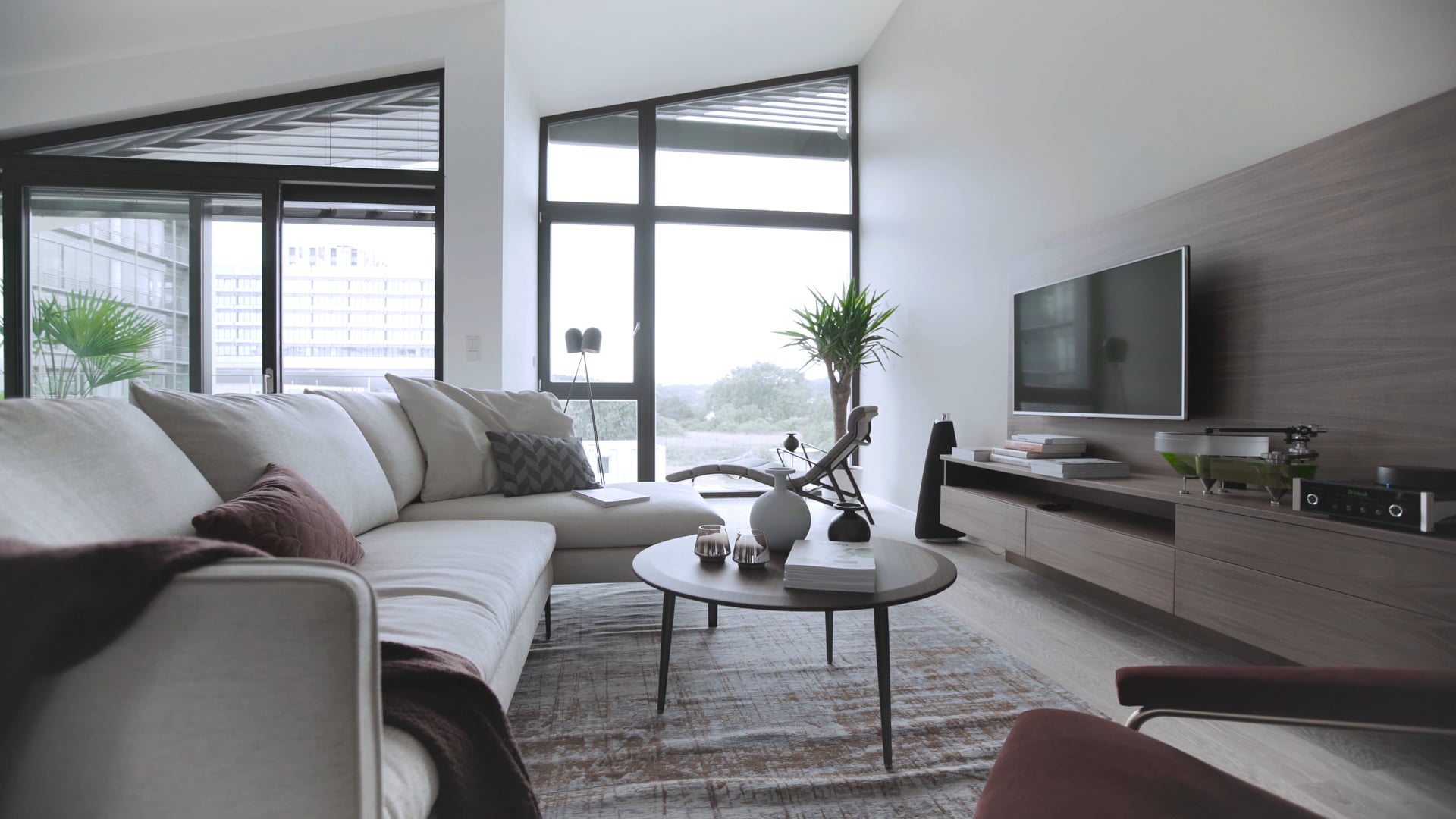 Dominantou bytu v 1. nadzemním podlaží je obývací pokoj s kuchyní, jídelnou a vstupem na terasu a dále do zahrady. K ložnici s en-suite koupelnou přiléhá východní lodžie. Dále je součástí dispozice prostorná vstupní hala, samostatná toaleta a komora. 2. nadzemní podlaží tvoří 2 ložnice (jedna z nich s lodžií), koupelna, samostatná toaleta, chodba a komora.