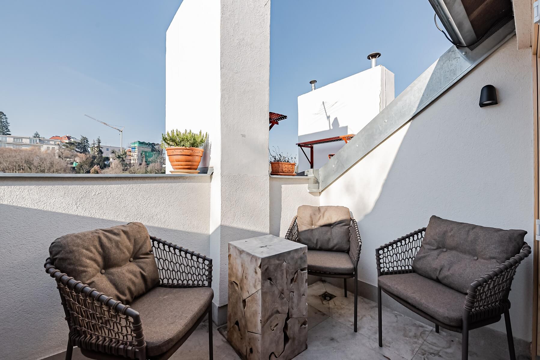 Nedávno zrekonstruovaný mezonetový byt s nadstandardním vybavením, dvěma terasami a výhledem do všech světových stran se rozkládá v nejvyšší úrovni historické vily obklopené vzrostlými stromy. Klidná lokalita v prestižní vilové čtvrti Malvazinky a zároveň jen kousek od živoucího smíchovského centra Anděl.