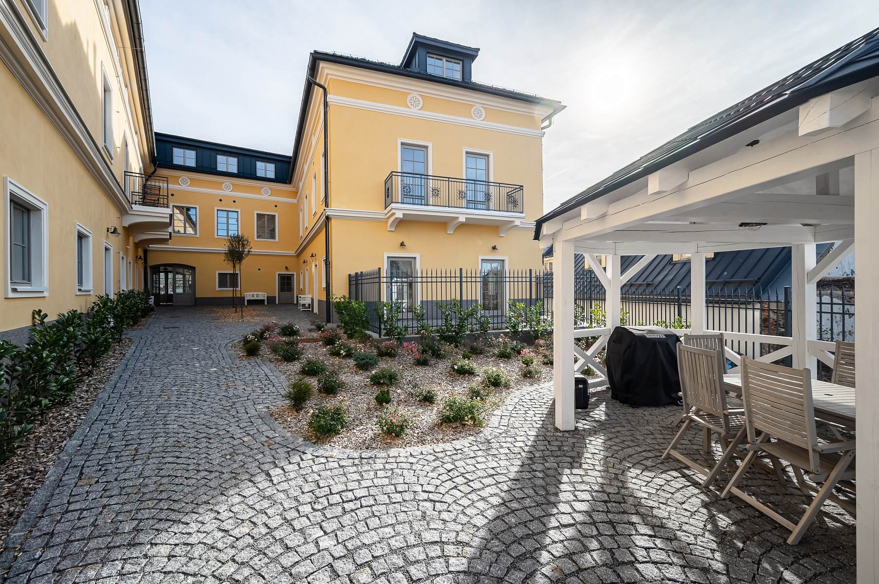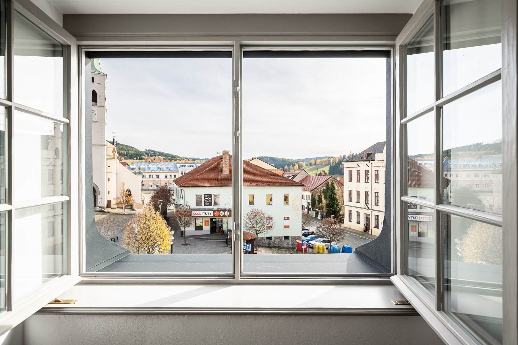 Nový prostorný a stylový byt v unikátní Rezidenci Bílá Růže, nově dokončené v městské památkové rezervaci malebných Kašperských Hor ležících v krásné krajině u národního parku Šumava.