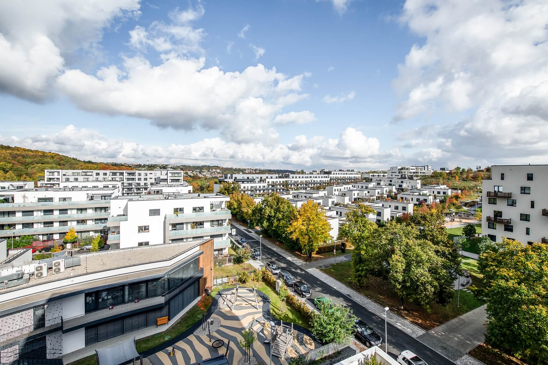 Hned naproti domu funguje mateřská škola a supermarket, blízko je do drogerie, kaváren, restaurací, zdravotnického zařízení, lékárny i na poštu. Součástí čtvrti je také dětské hřiště a pěkně upravený park. V rychlém dosahu jsou školy všech stupňů včetně waldorfské školy, Deutsche Schule Prag nebo Fakulty sociálních věd UK. Rychlé spojení s centrem zajišťuje metro (Anděl 6 minut, Můstek 11 minut) a autobusy z blízké zastávky (Anděl 8 minut jízdy). Oblast nabízí též skvělé možnosti pro sport i relaxaci, a to zejména v lesoparku Cibulka nebo v Prokopském údolí, nedaleko je též golfový klub s 9jamkovým hřištěm.