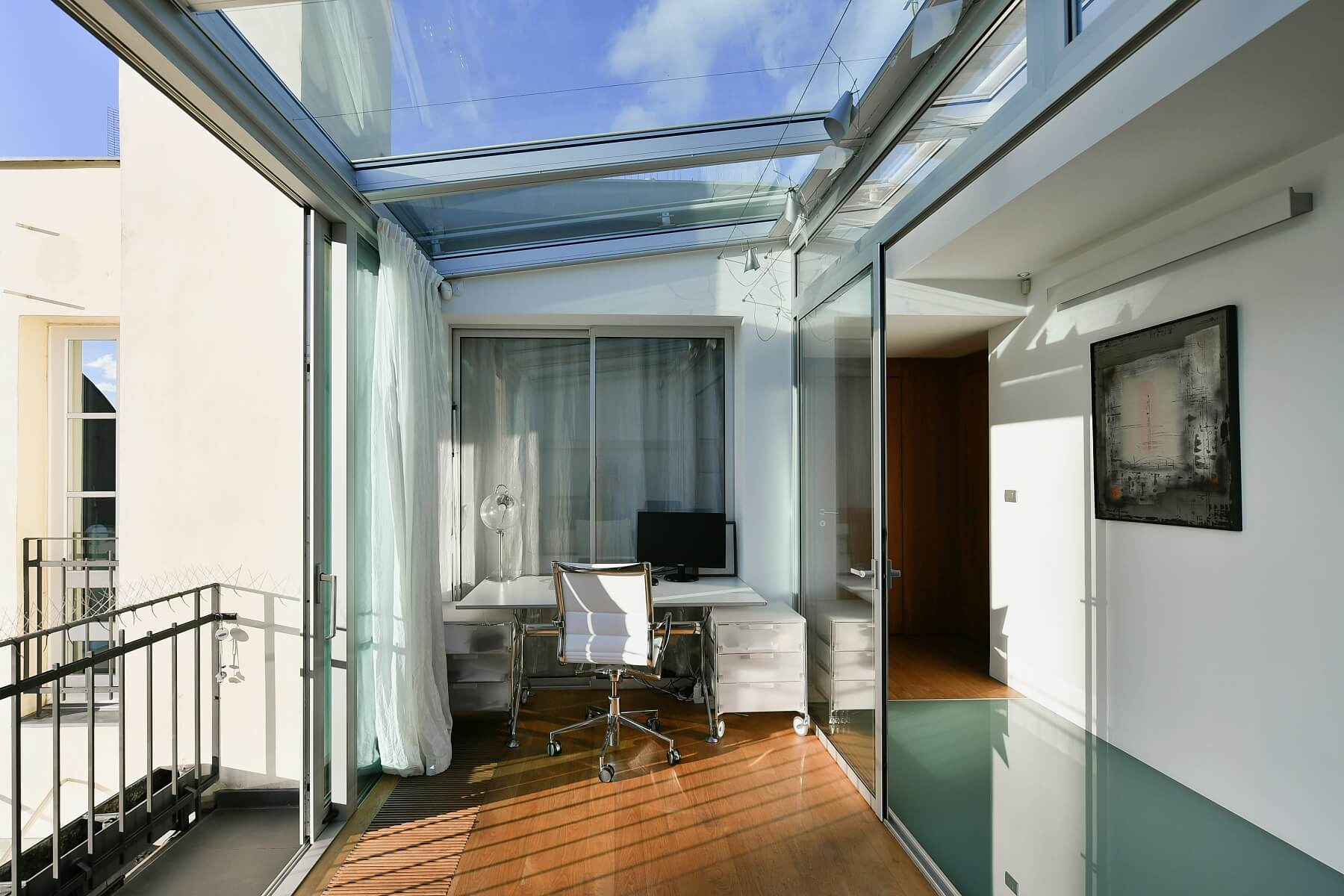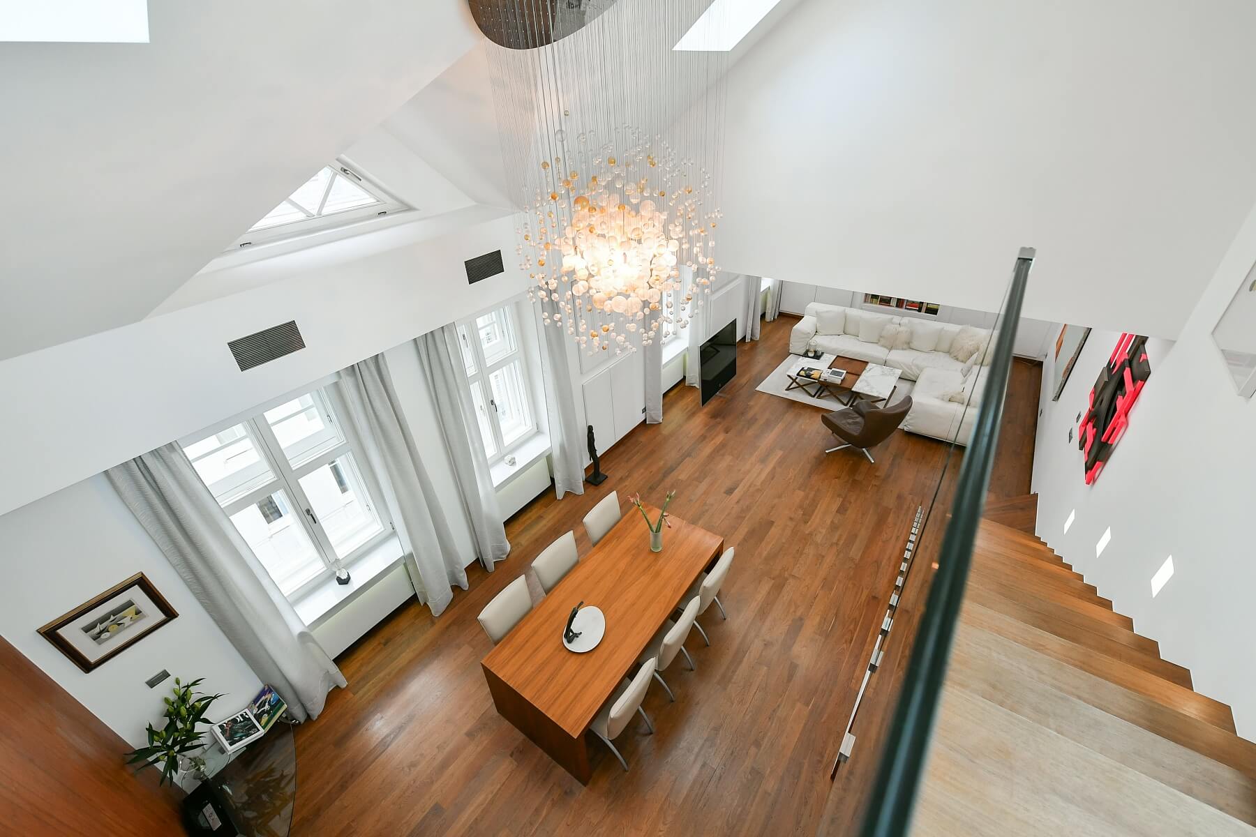 Spoustu prostoru ve vzdušném, špičkově vybaveném interiéru s přírodními materiály, působivý výhled na Pražský hrad ze zimní zahrady i balkonu a atraktivní poloha v centru metropole v Petrské čtvrti na Novém Městě.