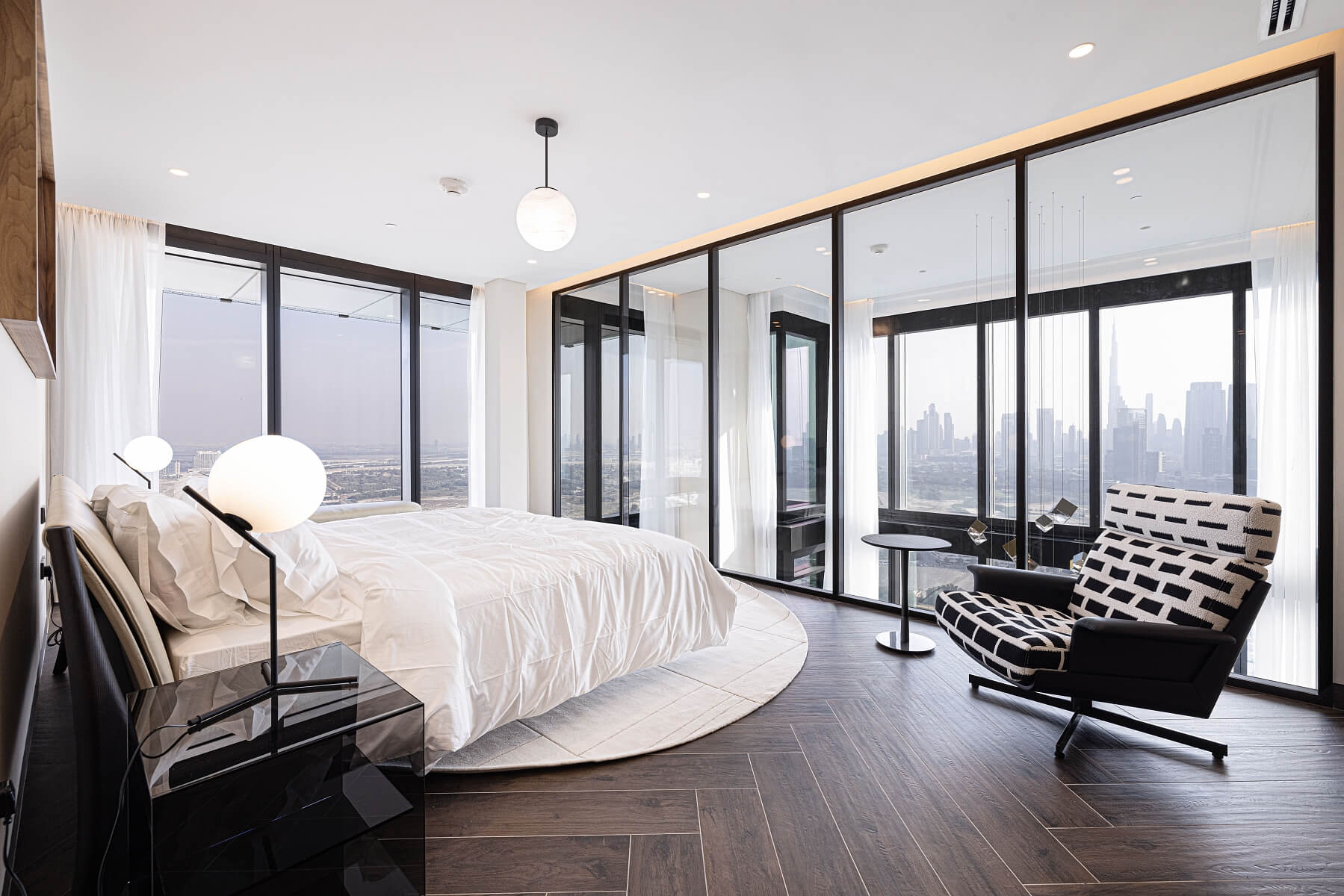 Vzdušný apartmán se širokým výhledem na dubajské panorama se nachází v luxusním rezidenčním komplexu The One Za’abeel Residences tvořeném dvěma věžemi s obytnou částí, fitness, bazénem, obchodním centrem, bary, lázněmi i michelinskými restauracemi.