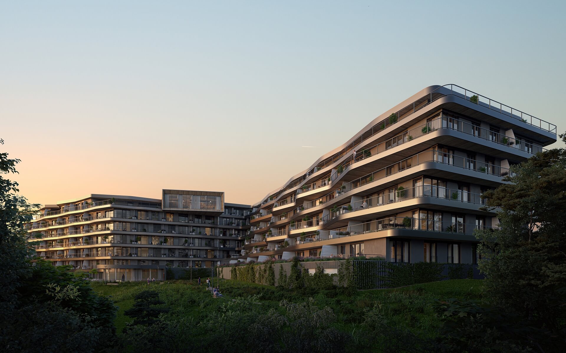 Bytový dům bude obklopovat zeleň s vodními prvky a parkovou úpravou, která přirozeně naváže na okolní lesopark. Přímo v budově bude fungovat restaurace s působivými výhledy na město i do dalekého okolí. Kousek od domu je autobusová zastávka, odkud lze za cca 15 minut dojet do centra města, cca 5 minut jízdy autem či autobusem je vzdálen OC Campus Square.