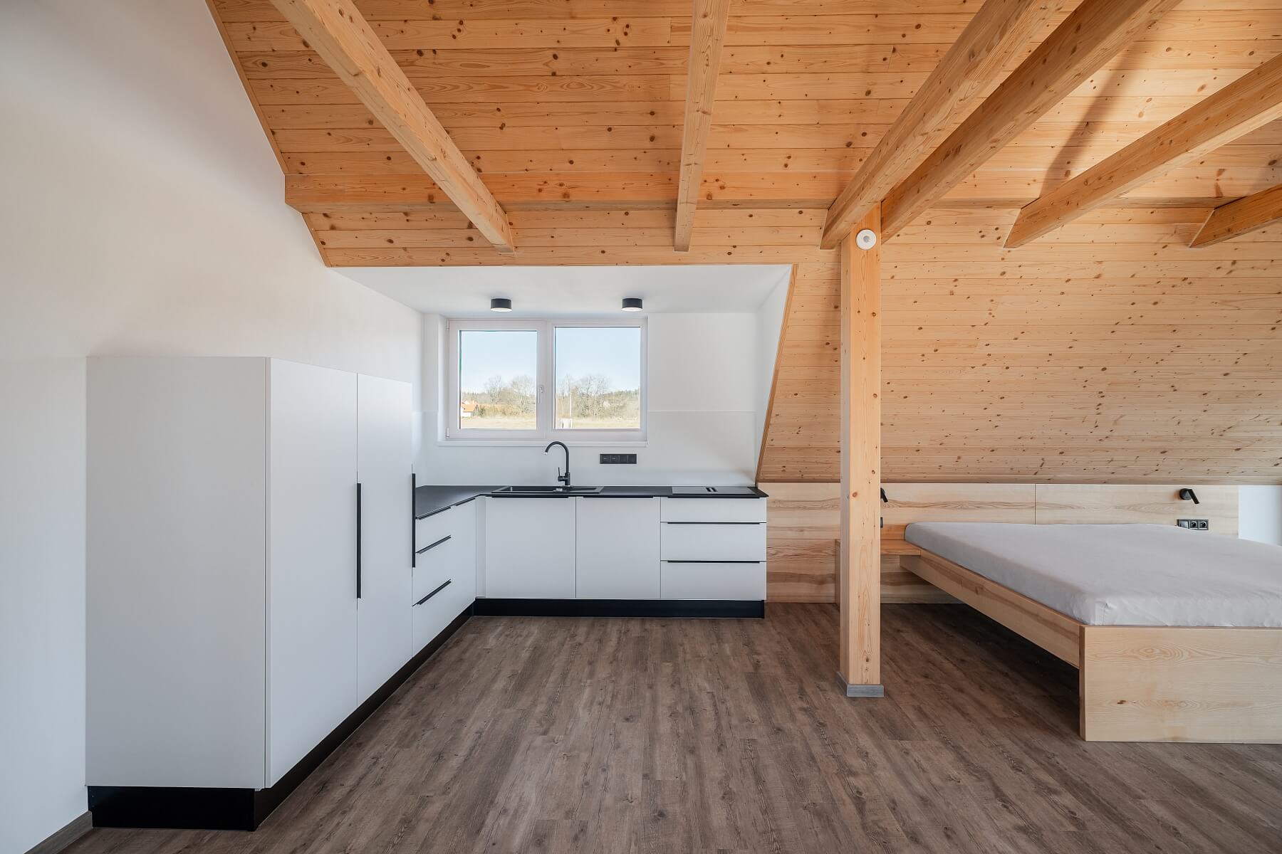 Součástí vybavení je systém chytré domácnosti Loxone, který umožňuje vzdálené ovládání vytápění, osvětlení a rolet. Ke standardu patří dřevohliníková okna s elektrickými roletami, kvalitní vinylové podlahy, podlahové vytápění, kuchyňská linka na míru, masivní jasanový nábytek a vysokorychlostní optický internet. V bytě jsou také krbová kamna, která dodávají prostoru útulnou atmosféru. Energii dodávají centrální tepelná čerpadla Alpha Innotec. Společné prostory jsou chráněny kamerovým systémem s videozáznamem a zahrnují lyžárnu / kolárnu a zahradu s kamenným ohništěm.