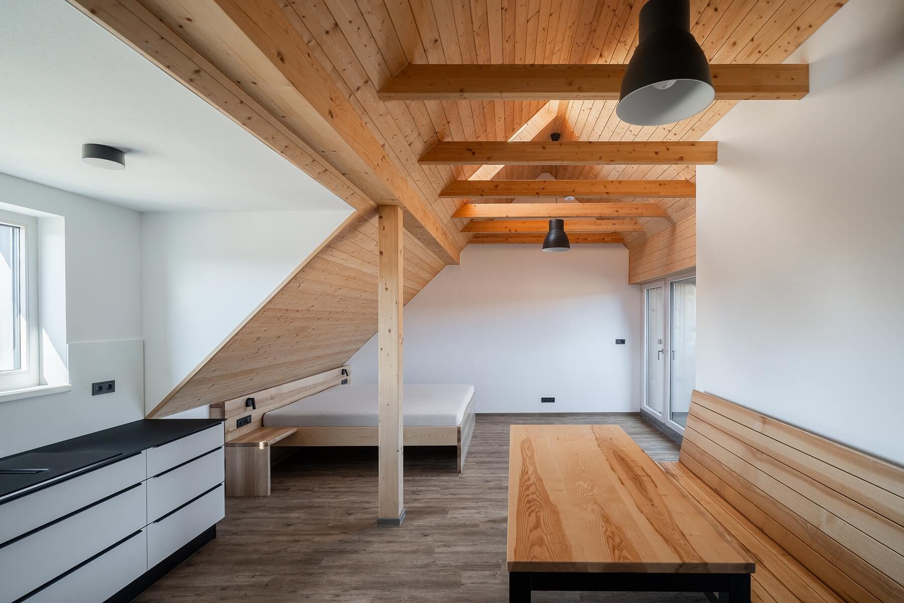 Součástí vybavení je systém chytré domácnosti Loxone, který umožňuje vzdálené ovládání vytápění, osvětlení a rolet. Ke standardu patří dřevohliníková okna s elektrickými roletami, kvalitní vinylové podlahy, podlahové vytápění, kuchyňská linka na míru, masivní jasanový nábytek a vysokorychlostní optický internet. Energii dodávají centrální tepelná čerpadla Alpha Innotec. Společné prostory jsou chráněny kamerovým systémem s videozáznamem a zahrnují lyžárnu / kolárnu a zahradu s kamenným ohništěm.
