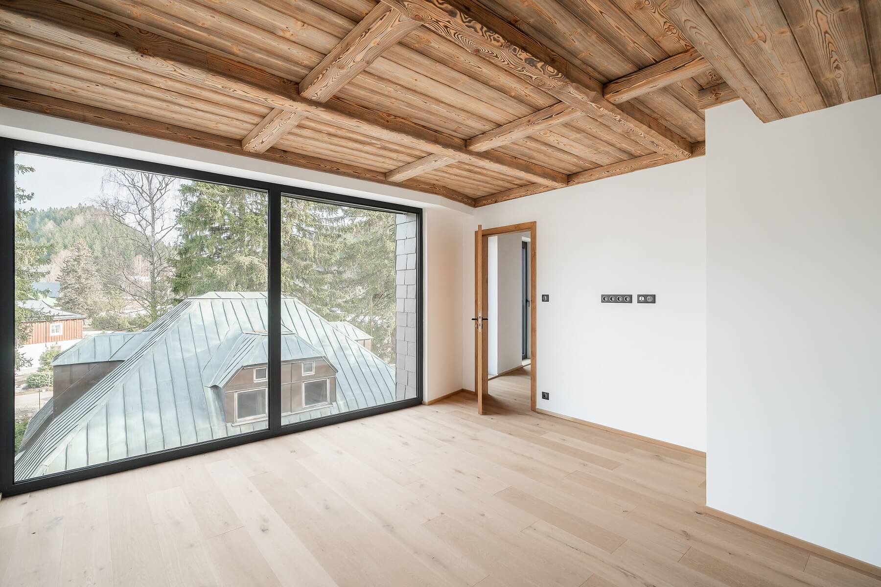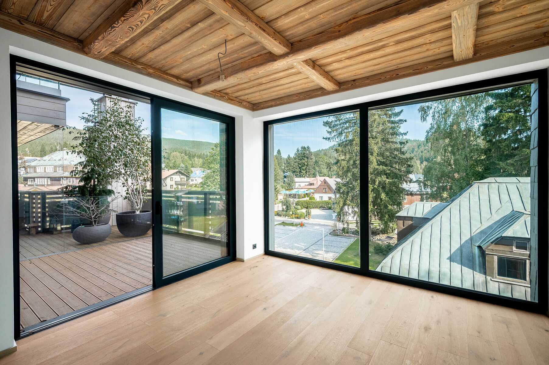 Nízkoenergetická budova byla dokončena v r. 2024. Vysoký standard zahrnuje dřevěné podlahy, dřevěný obklad v koupelně, dýhované bezfalcové dveře (vstupní s bezpečnostním kováním) a sanitu Grohe v barvě Hard Graphite. K bytu lze zakoupit sklepní kóji a garážové nebo venkovní parkovací stání. Majitelům bytů je k dispozici privátní wellness se saunou a jedinečnými výhledy, recepce, lobby, kavárna s možností snídaňového servisu, herna, dětský koutek či servis lyží a kol.