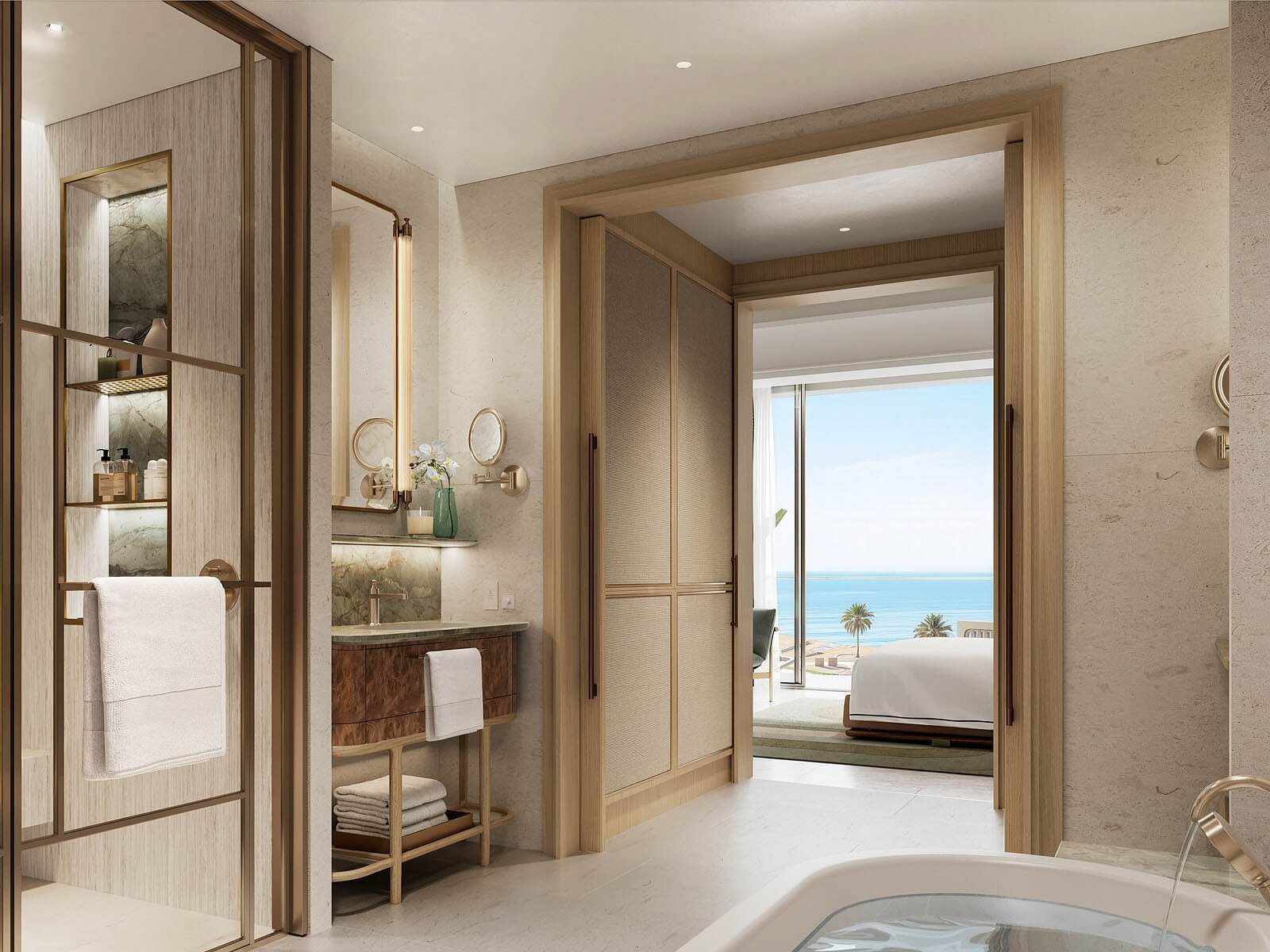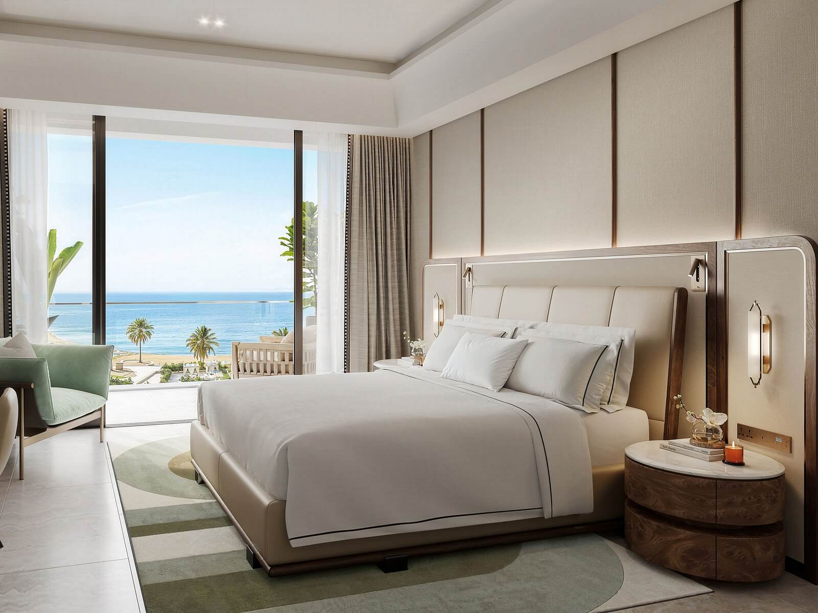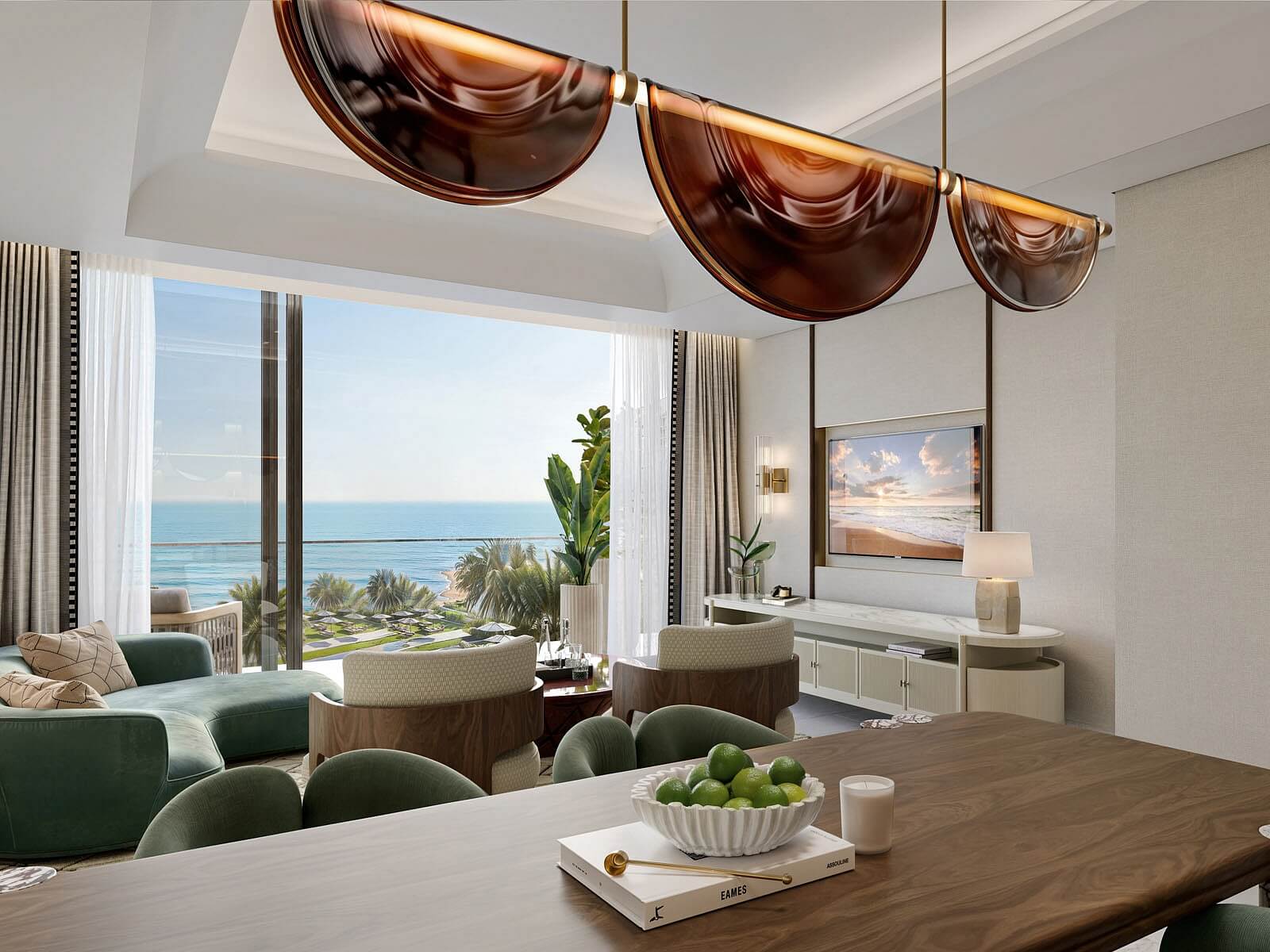 Byt vyniká výjimečným designem vytvořeným z prémiových materiálů a otevřený půdorys umožňuje plynulý přechod mezi interiérem a venkovními prostory. Vybavení zahrnuje vestavěný nábytek a kompletně zařízenou kuchyňskou linku (lednice s mrazákem, varná deska, trouba, pračka). Budoucí majitelé mohou využívat výhody bydlení ve Fairmont Residences, jako je přístup k infinity bazénu, modernímu fitness centru a službám concierge. Samozřejmostí je nepřetržitá ostraha areálu, který disponuje také širokým výběrem restaurací a obchodů.