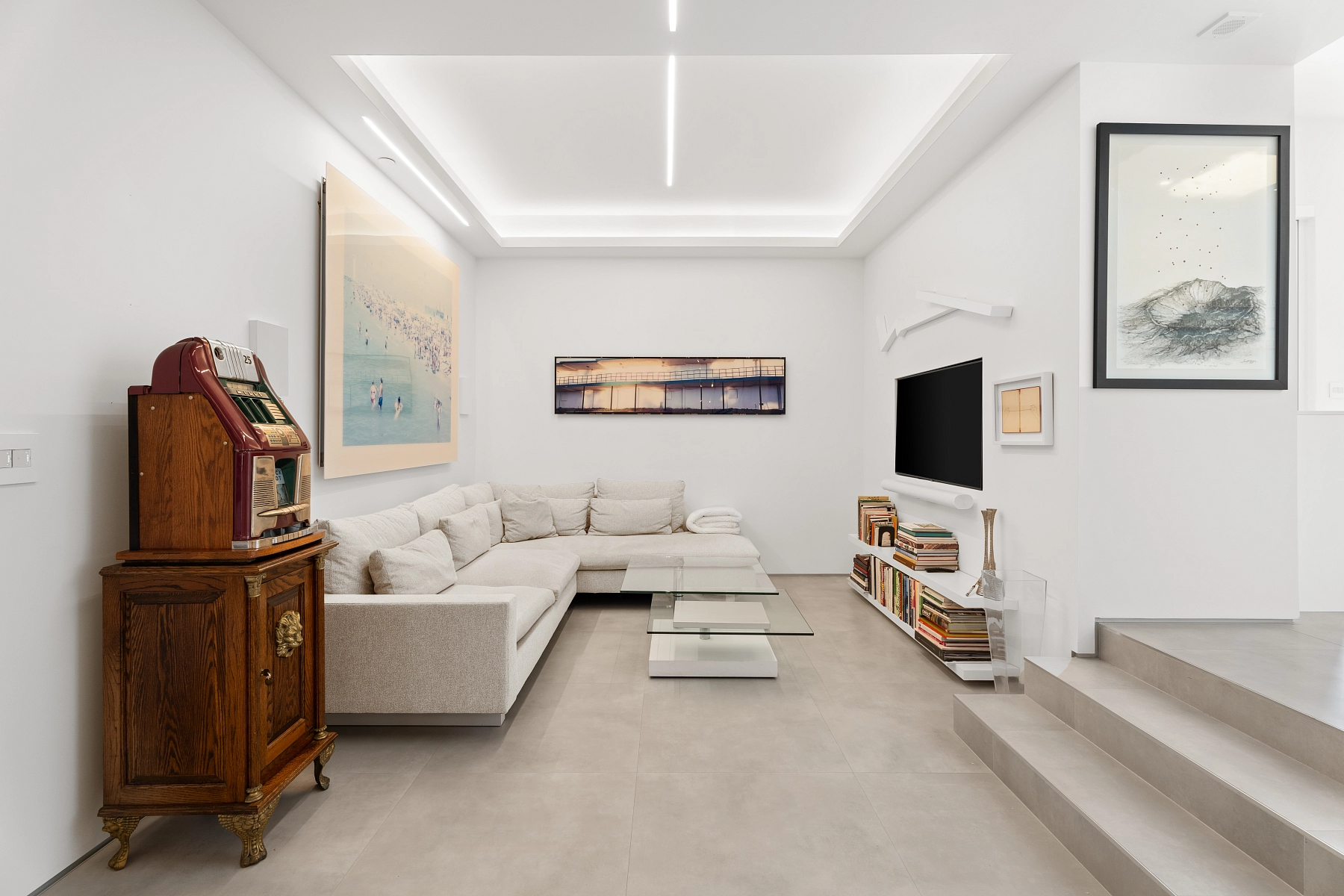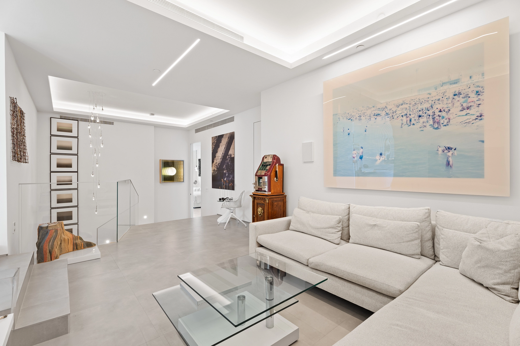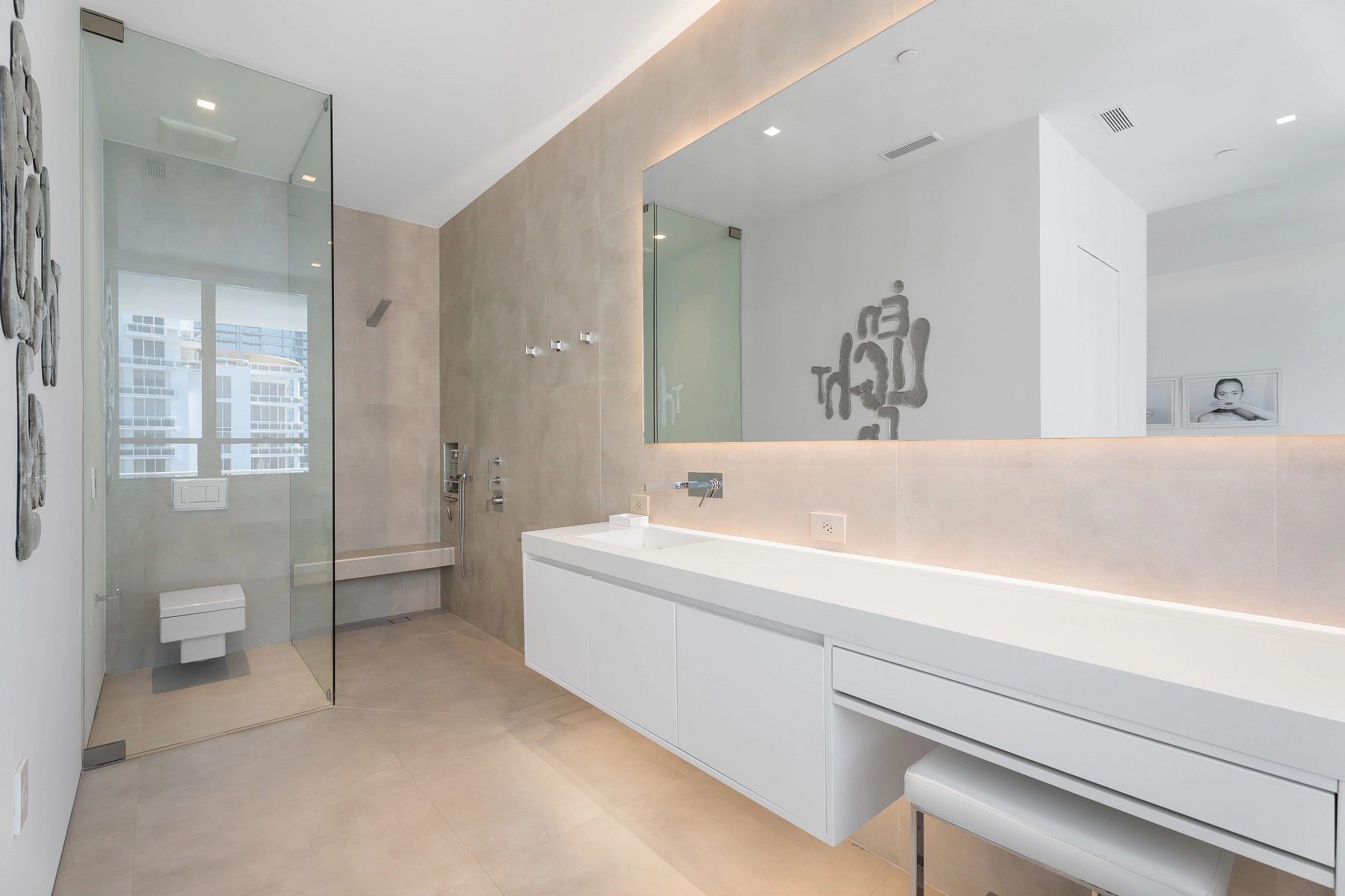 Elegantní a prudce moderní dvoupodažní penthouse s rozlehlou střešní terasou a bezkonkurenčními výhledy na záliv Biscayne Bay je situován v nejvyšších patrech rezidence Courts Brickell Key v ostrovní části Brickellu v Miami.