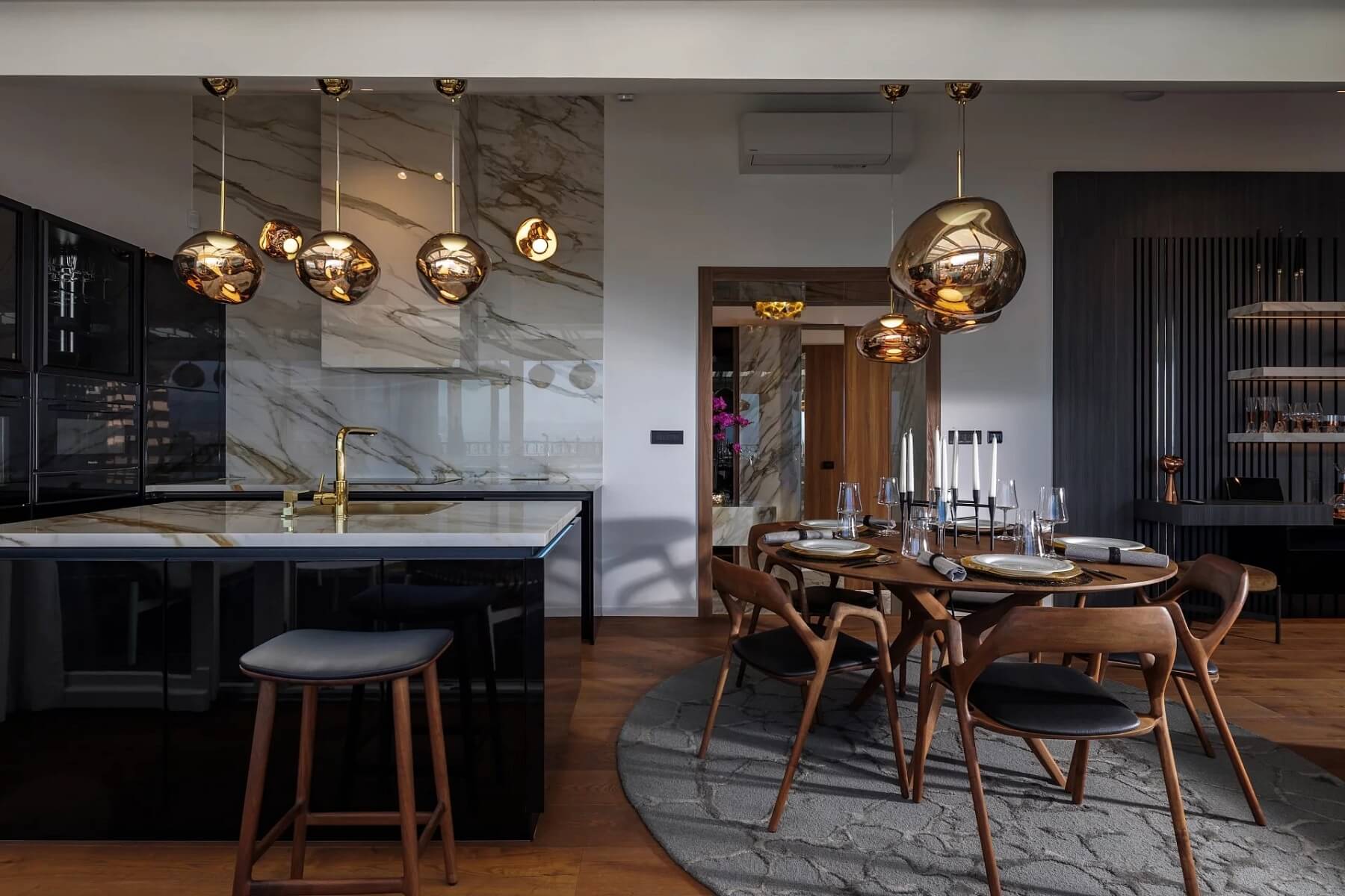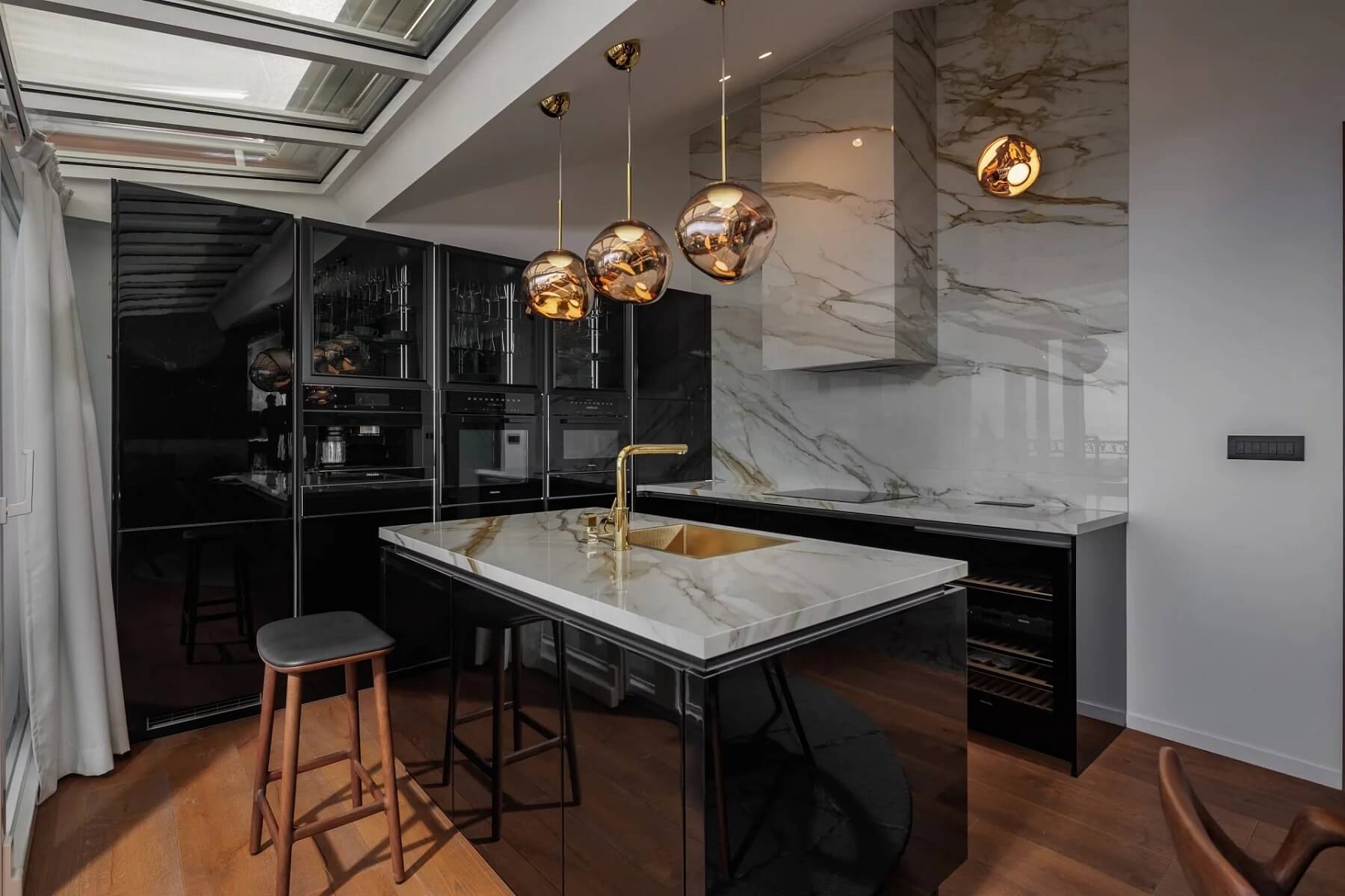 Interiér penthousu byl koncipován s ambicí vytvořit výjimečný a vizuálně silný prostor. Design zahrnuje zakázkový řemeslný nábytek, designová svítidla a textilie, jako je kůže, hedvábí, samet a vysoce kvalitní vlna. Technologické vybavení zahrnuje nejmodernější systém chytré domácnosti SOMFY a bezpečnostní a kamerový systém. Součástí nemovitosti jsou 2 krytá parkovací stání a sklep v suterénu.