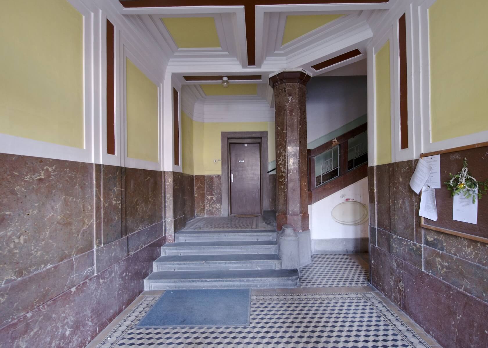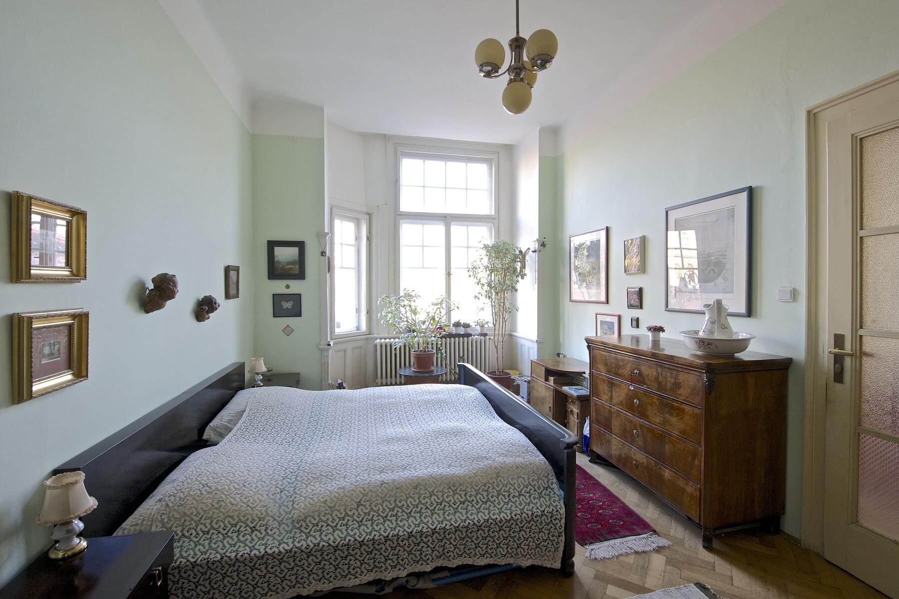 Interiér dotváří zachované původní prvky jako špaletová okna, původní ostění, dvoukřídlé dveře, dubové parkety a funkční kachlová kamna. Výtah, plynový kotel. Byt je vhodný k citlivé rekonstrukci a vytvoření prestižního bydlení.