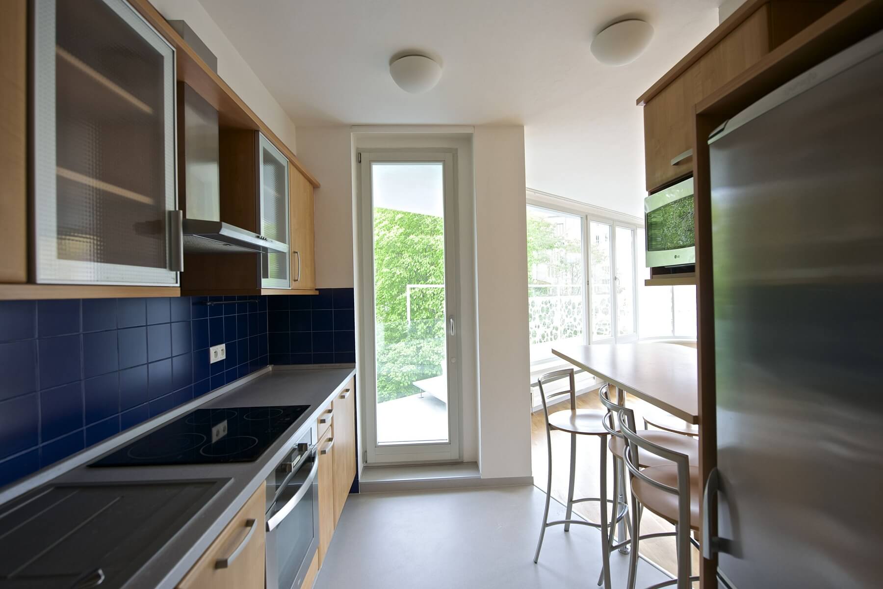 Zajímavě řešený, prosvětlený byt s balkonem poskytující výhledy do zeleně je situovaný ve 4. patře originálně řešeného bytového domu v atraktivní čtvrti Břevnov. Předností bytu je prostorný obývací pokoj, ze kterého je přístupná terasa (16 m2). Budova na nároží připomínající tančící dům byla navržena architektonickým ateliérem ANTA.