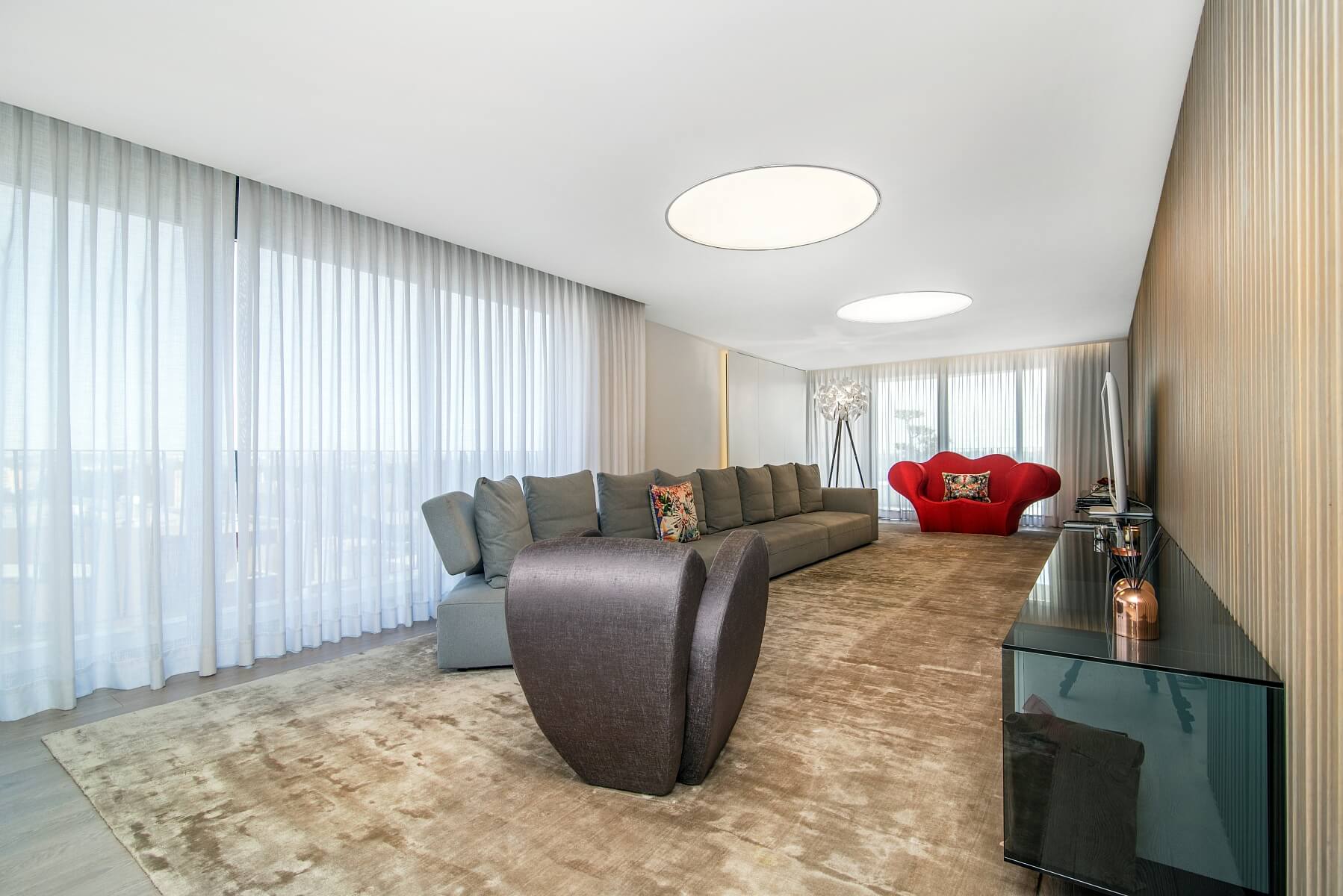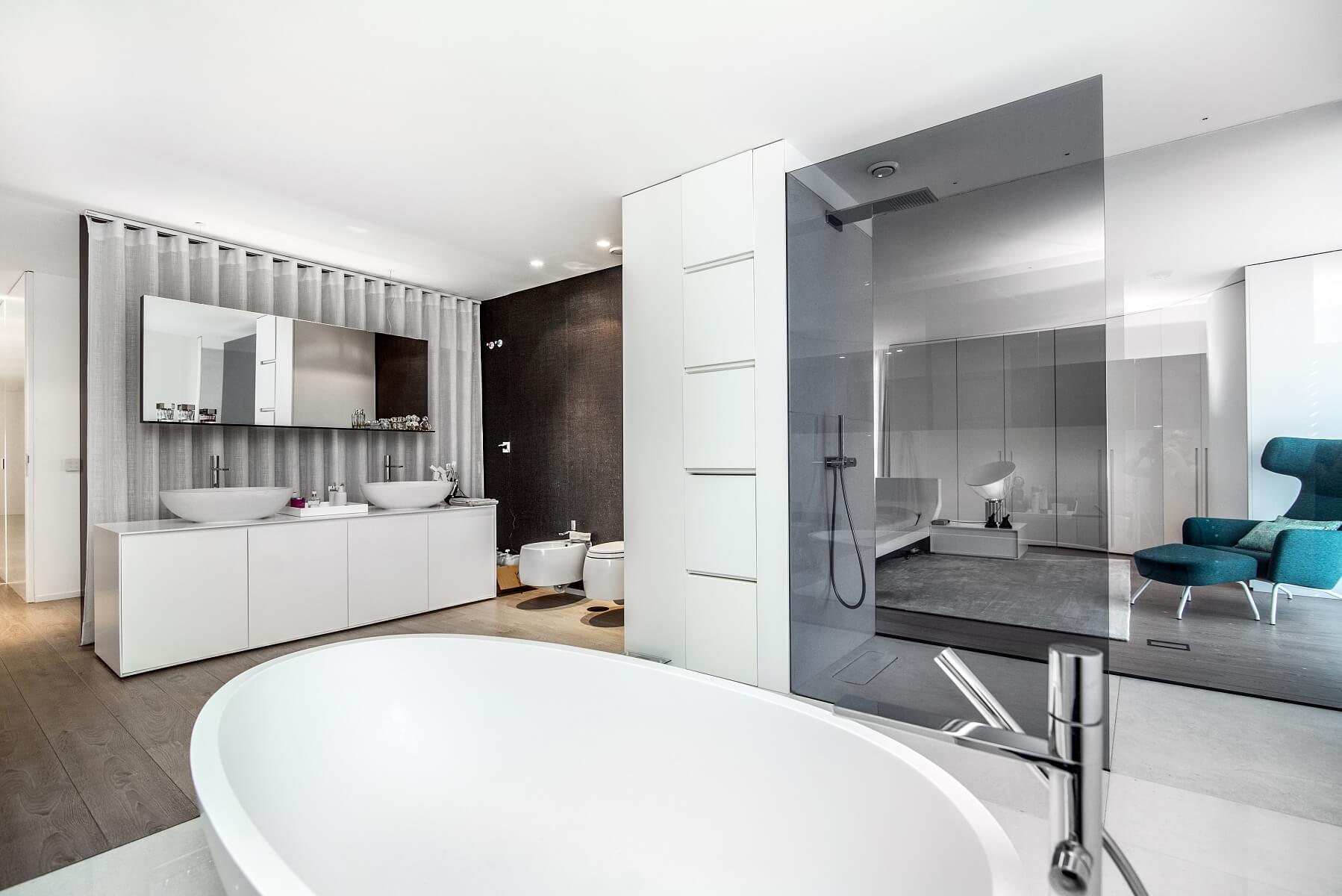 Duplex s 5 ložnicemi a 5 koupelnami kombinuje vysoce kvalitní konstrukci a povrchové úpravy spolu s praktickým a prostorným uspořádáním - to vše doplňuje velké množství světla v celém prostoru. Všechny pokoje jsou vybaveny koupelnou a množstvím úložných prostor. Obývací pokoj se rozprostírá až na velkou terasu s úchvatným výhledem do okolí a naprostým soukromím. Mimo jiné je zde také parkoviště pro pět automobilů.
