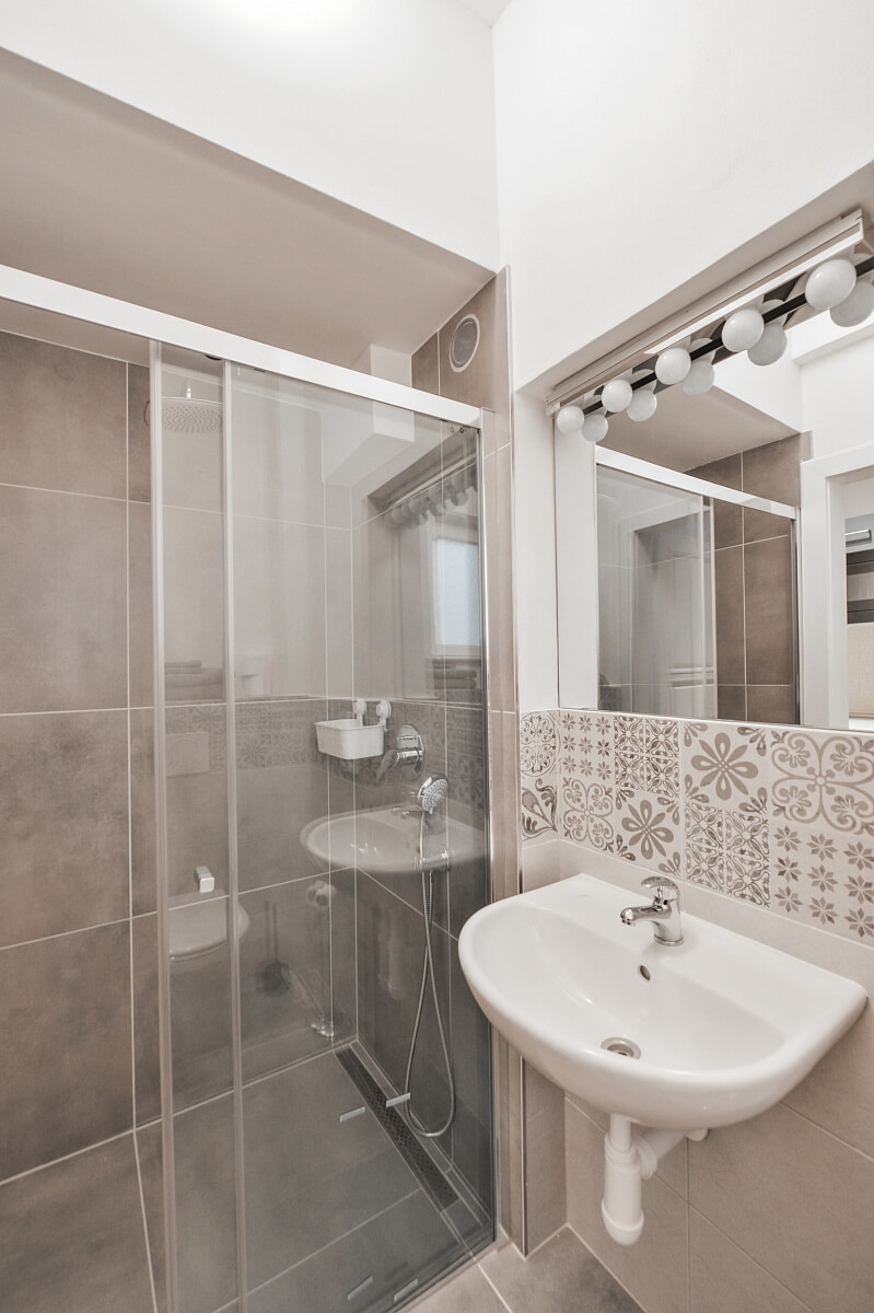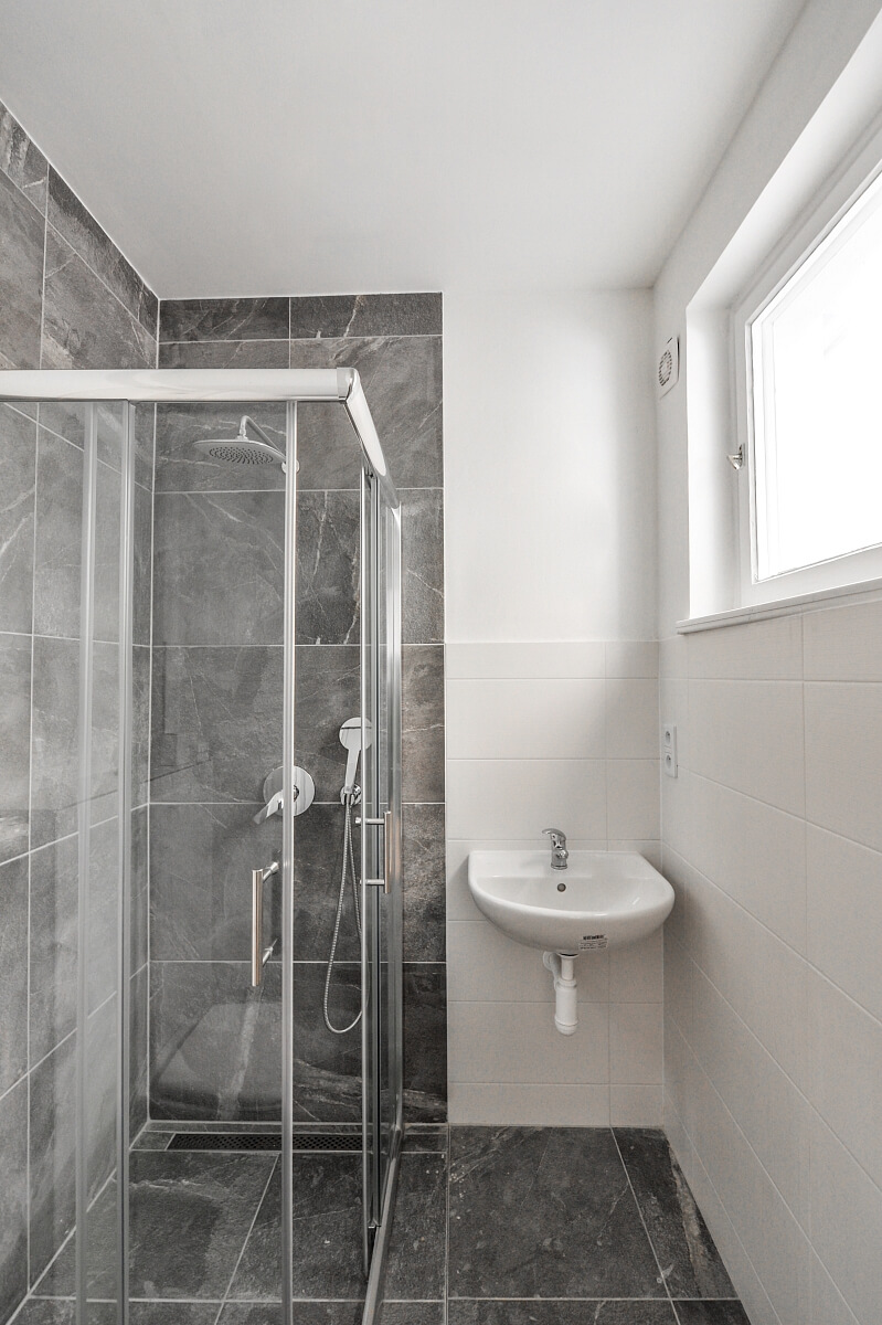 V přízemí bude jeden z menších apartmánů, který bude tvořen obytným prostorem, kuchyňským koutem, koupelnou a zádveřím, v patře budou další dva apartmány jeden z nich nabídne obytný prostor s kuchyňským koutem a koupelnu. Chodba bude oddělovat další apartmán, který bude tvořen ze 2 pokojů, kuchyňského koutu, koupelny a balkonu. Součástí foyer bude i společná prádelna.