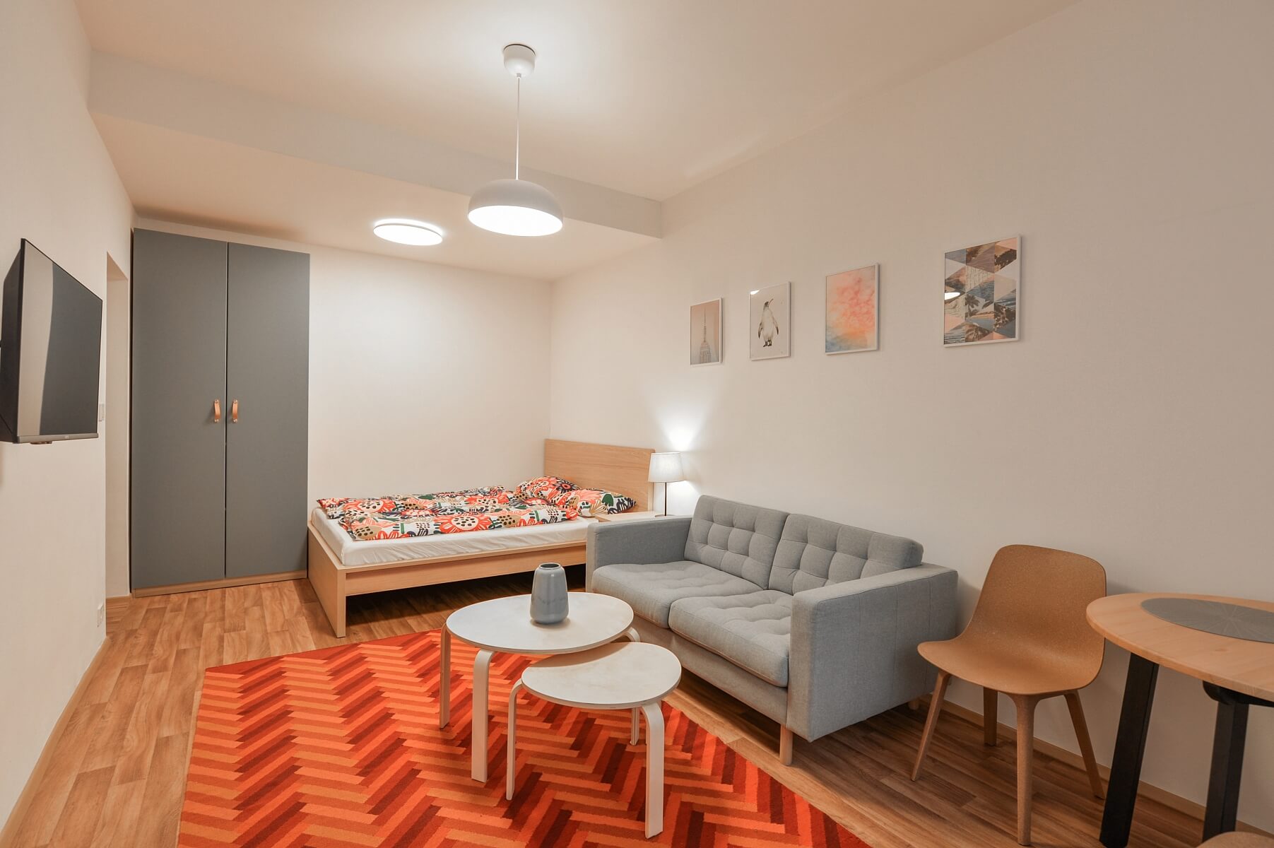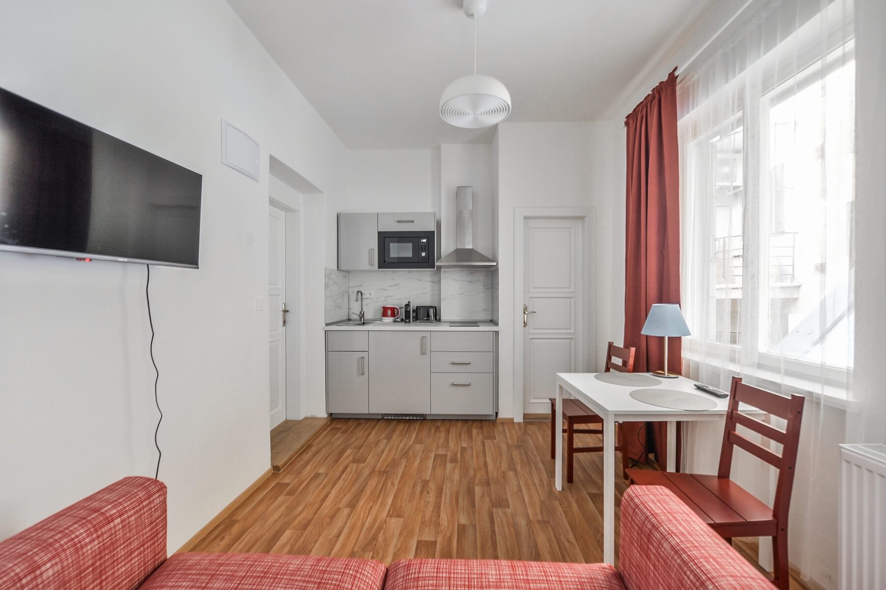 Dvoupodlažní bytová jednotka s okny směřujícími do vnitrobloku se nachází v zadním traktu bytového domu v samém centru Prahy a přesto v naprostém soukromí. Byt bude připraven pro účely krátkodobého pronájmu a rozdělen na tři samostatné apartmány.
