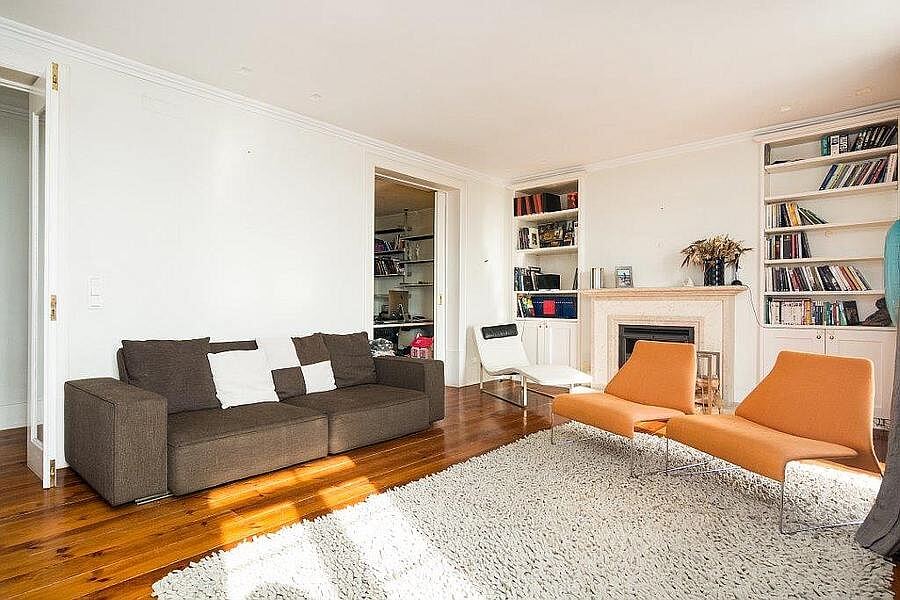 Jižně orientovaný, klimatizovaný byt s balkony, krbem a výhledy na řeku Rio Tejo leží v centru Lisabonu v oblasti Chiado proslulé svou kulturní scénou.