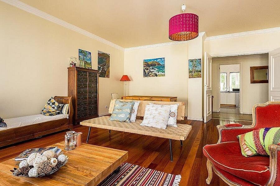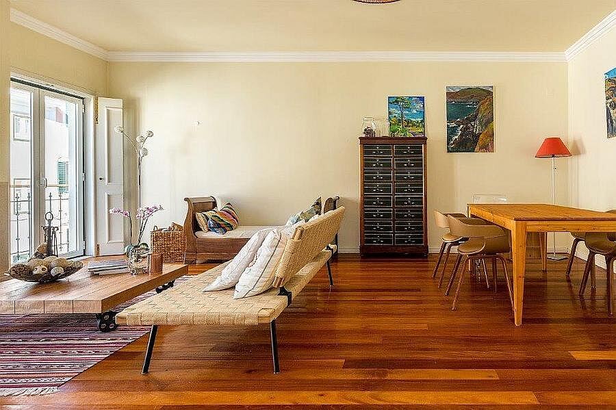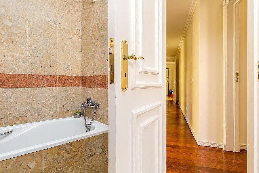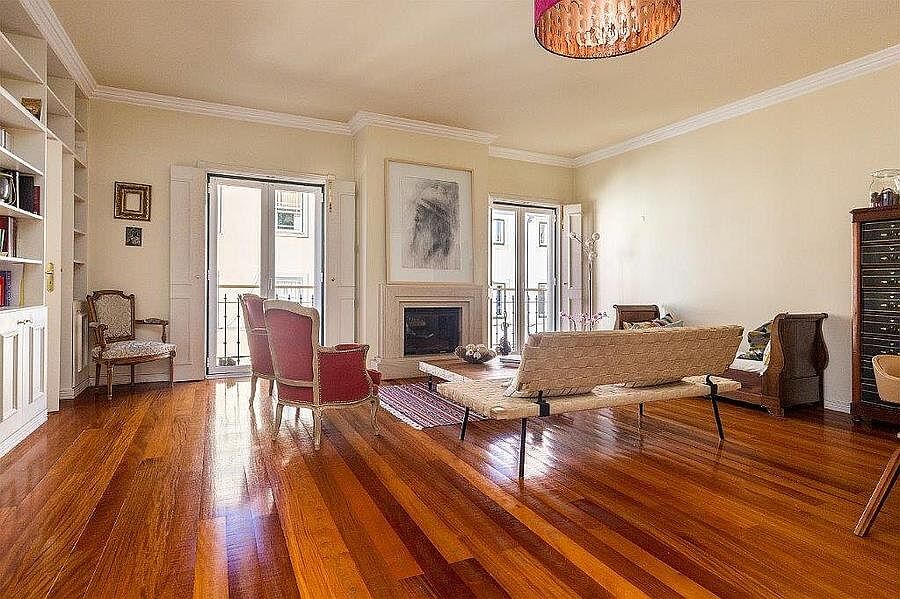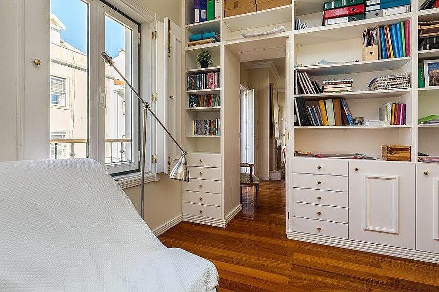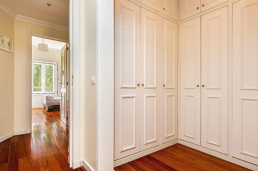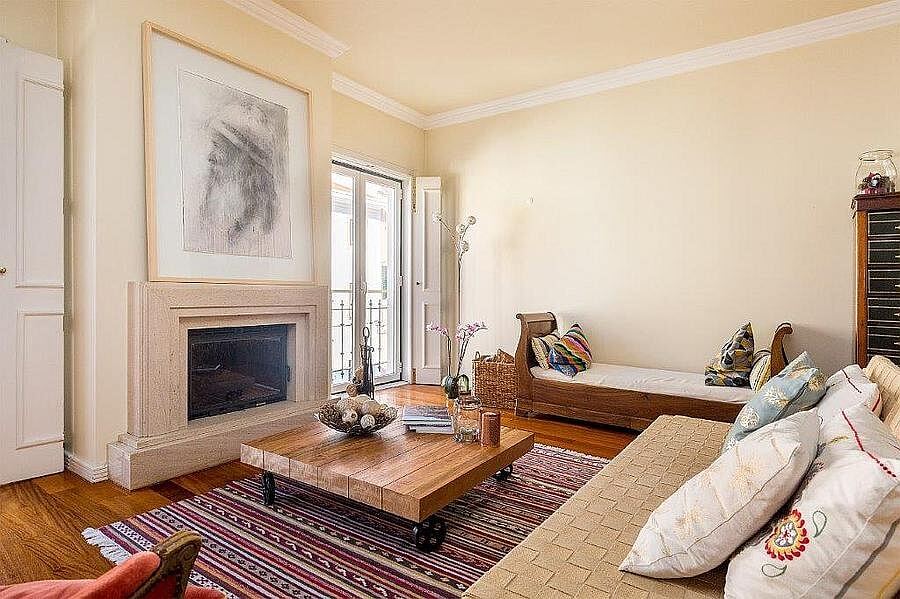 Interiér se pyšní velkým množstvím denního světla a prostornými pokoji, které jsou chytře vybaveny vestavěnými skříněmi. Součástí bytu je obývací pokoj s krbem a pracovním prostorem, samostatná kuchyň, tři ložnice, dvě koupelny a vstupní hala se skladovací místností.