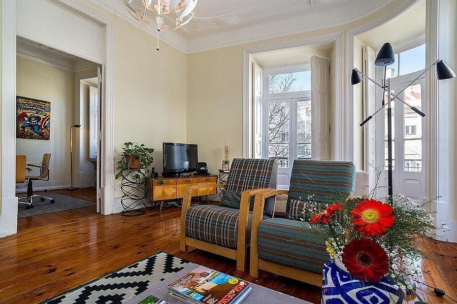 Příjemně zařízený byt s mnohými původními prvky se nachází v přístavní čtvrti Alcântara, která je domovem kreativní scény Lisabonu.