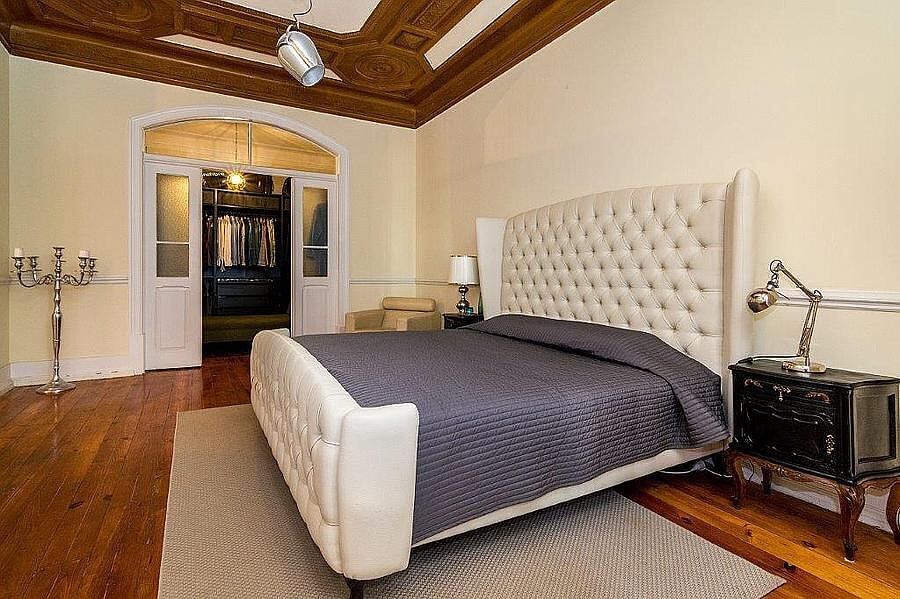 Dispozice se skládá z velkého obývacího pokoje, jídelny, samostatné kuchyně, čtyř ložnic a dvou koupelen. Byt se může pochlubit hezkými architektonickými detaily včetně dřevěných podlah a oken nebo modrobílé dekorované dlažby. V domě je k dispozici výtah.