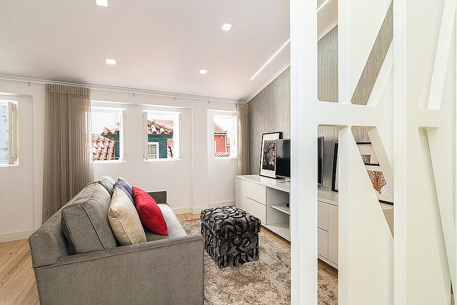 Pečlivě zrekonstruovaný byt je situovaný přímo v srdci historického Lisabonu. Oblíbená čtvrť Alfama je proslulá svým strmým terénem a dlážděnými ulicemi lemovanými starými fasádami, které vedou až k maurskému hradu São Jorge.