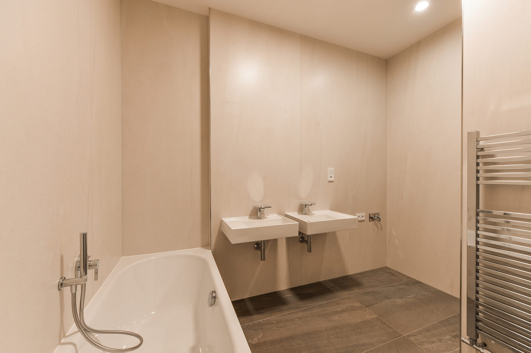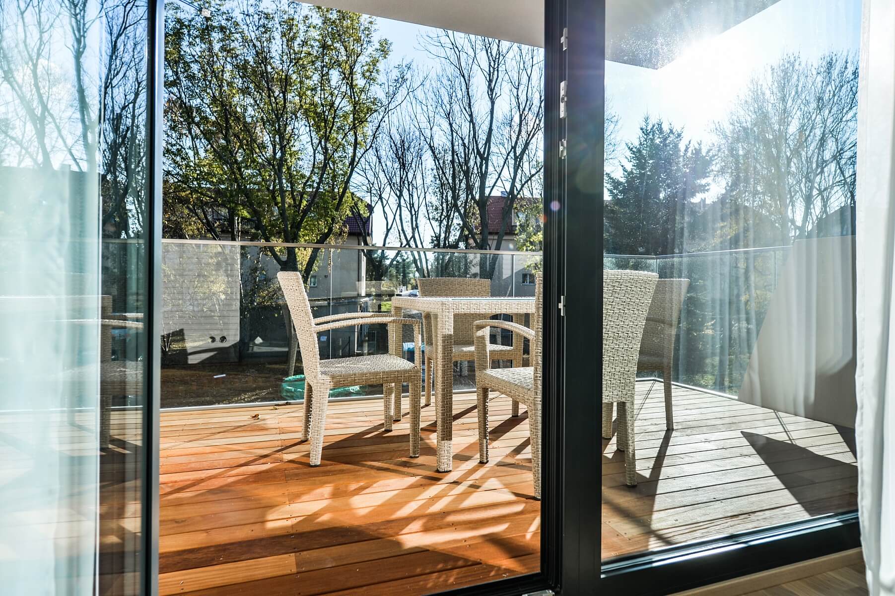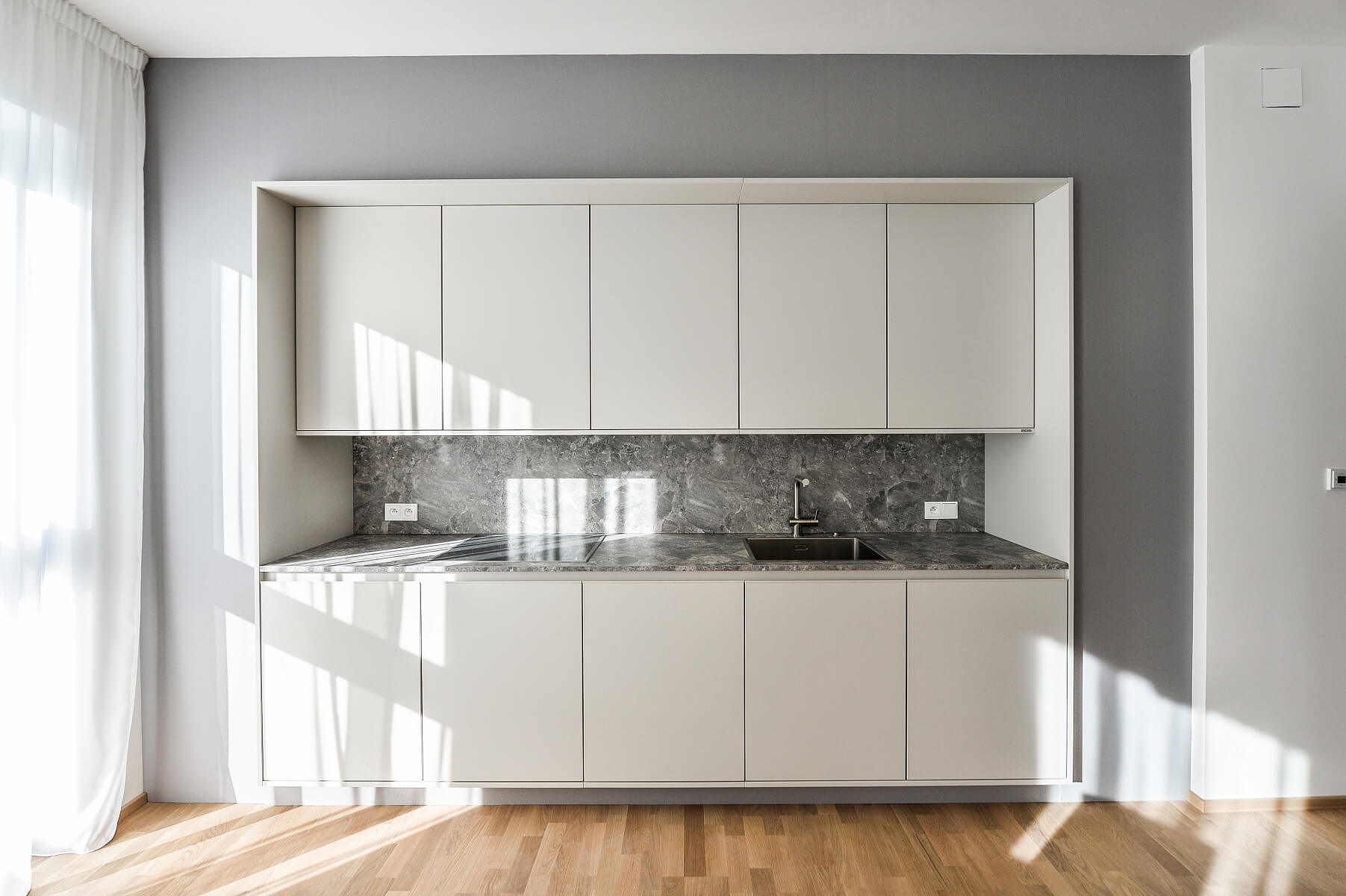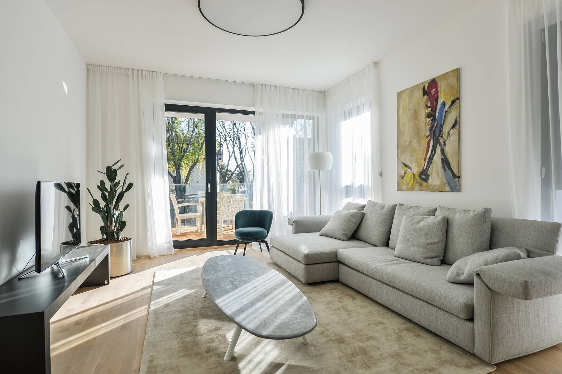 Pocit volného prostoru a dostatku vzduchu umocňuje téměř třímetrová výška stropů a velkoplošná okna „od podlahy ke stropu“. K vysokému standardu patří dubové podlahy, podlahové vytápění, velkoformátová dlažba, povrch balkonu z tropického dřeva, bezfalcové dveře, příprava na klimatizaci, špičkové sanitární vybavení nebo bezpečnostní vstupní dveře (třída 3). K bytu je možné přikoupit velkou sklepní kóji a až 2 garážová stání (nyní dle vlastního výběru). Obyvatelům je k dispozici společná zahrada s místem pro grilování, relaxačními zónami nebo pískovištěm navržená vyhlášeným atelierem zahradní architektury Flera.