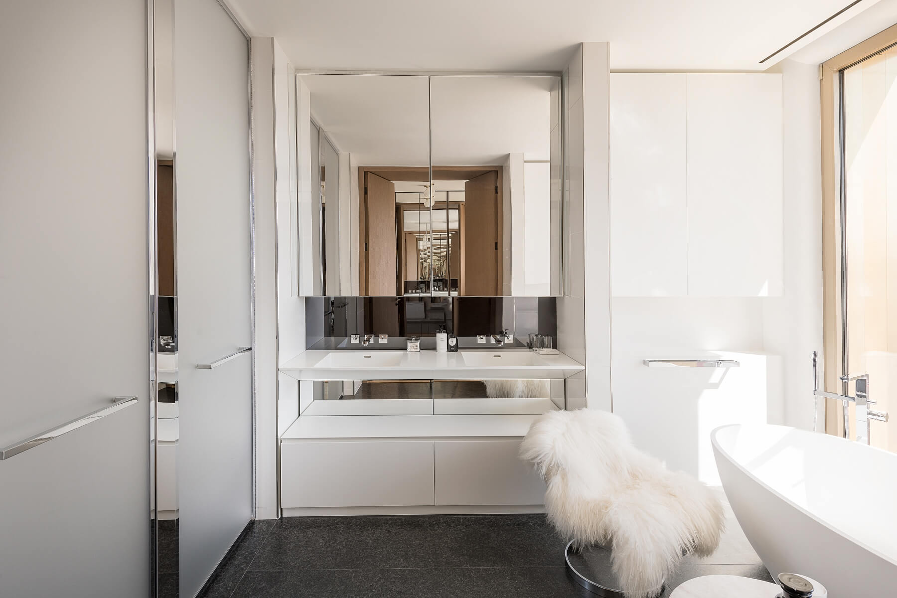 Krásná rezidence byla navržená studiem Foster + Partners a zahrnuje unikátní vintage nábytek a nadstandardní spotřebiče a povrchy. Interiér se rozprostírá na více než 225 m2, má 2 ložnice, 2 koupelny a samostatnou toaletu. Vybavení kuchyní a materiály použité v knihovnách a koupelnách jsou té nejvyšší kvality.