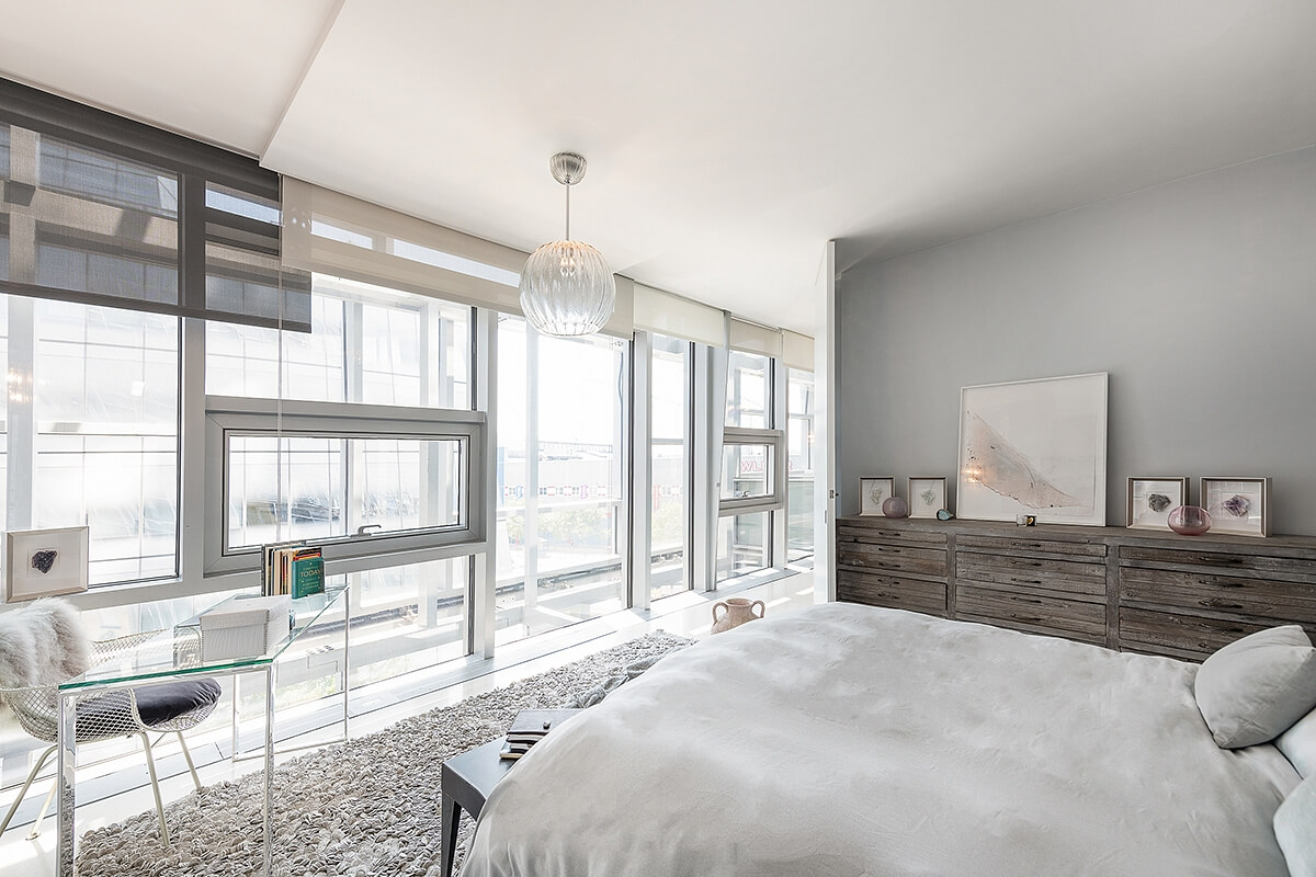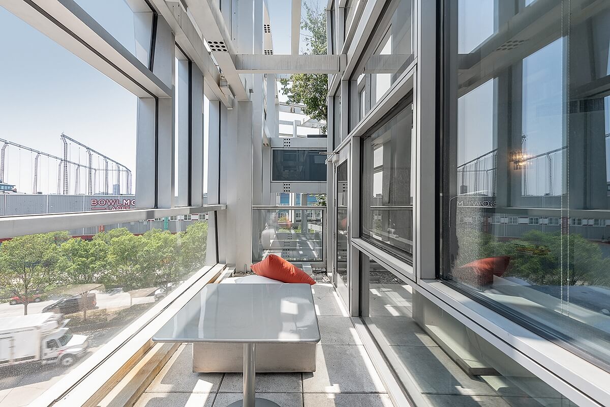 Jižně orientovaný byt s jednou ložnicí, koupelnou a samostatnou toaletou se chlubí okny od podlahy ke stropu a dlouhou terasou s výhledy na město. Pokoje jsou krásně prosvětlené a šatna i komora jsou elegantně ukryty, aby se vytvořilo více prostoru v obývacím pokoji. Otevřený koncept jídelny má plně vybavenou moderní kuchyň s centrálním ostrůvkem, nerezovými skříňkami a spotřebiči z nerezové oceli.
