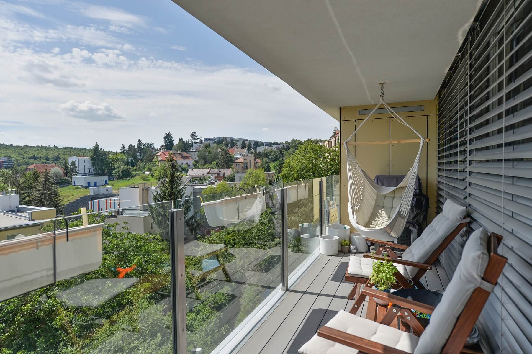 Světlý a slunný byt s parkováním, prostornou lodžií a výhledem do zeleně je součástí moderního bytového domu Rezidence Aurum s 23 bytovými jednotkami. Rezidence je zasazena do příjemné lokality tradiční vilové čtvrti Malvazinky.