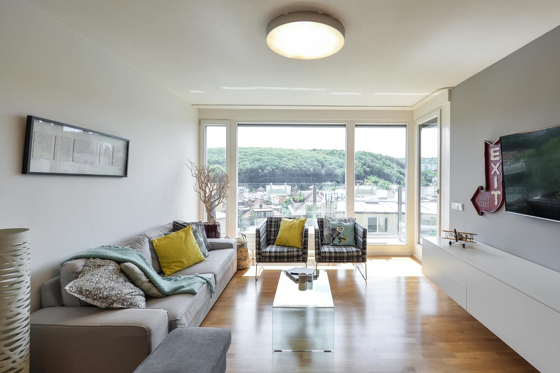 Součástí vybavení jsou dřevěné plovoucí podlahy, dřevěná velkoformátová izolační eurookna s čtyřstupňovým systémem větrání a předokenními hliníkovými žaluziemi, kompletně vybavená kuchyně, skleněné zábradlí lodžie, bezpečnostní vstupní dveře a videotelefon. Na terase je praktická komora na uskladnění venkovního nábytku, k bytu dále přísluší sklep a 1 venkovní parkovací stání.