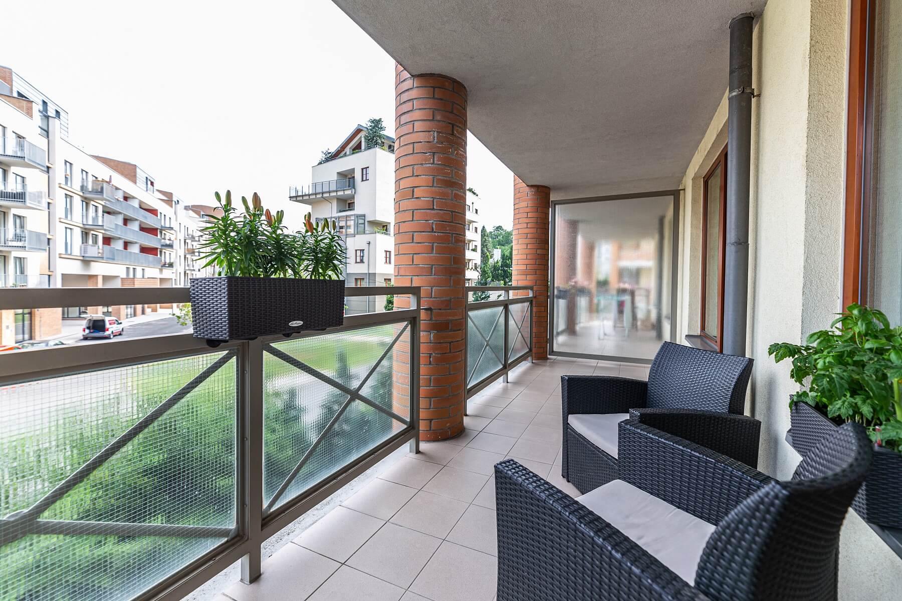 Byt se 2 velkými balkony přístupnými ze všech obytných místností se nachází ve 2. podlaží domu v moderním rezidenčním komplexu umístěným v Praze 6 – Dejvice nedaleko Stromovky a přírodní památky Baba.