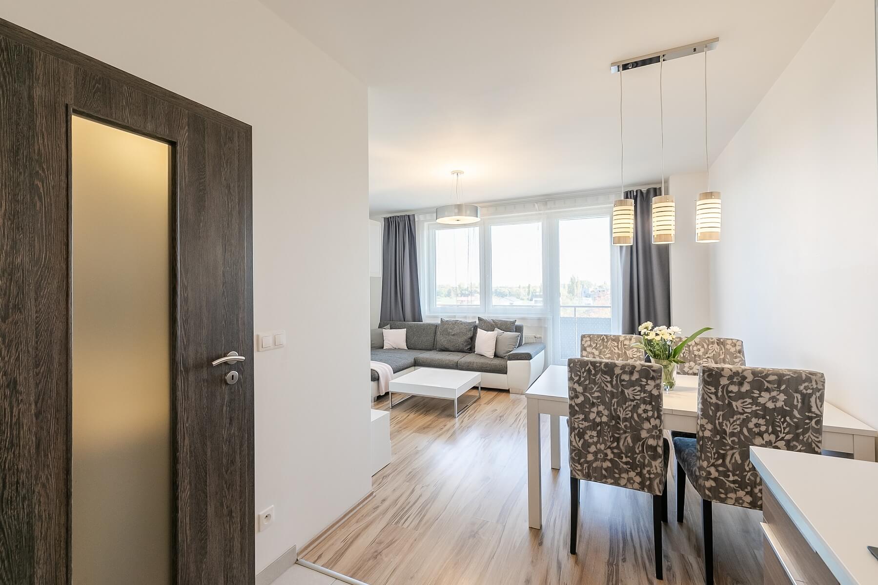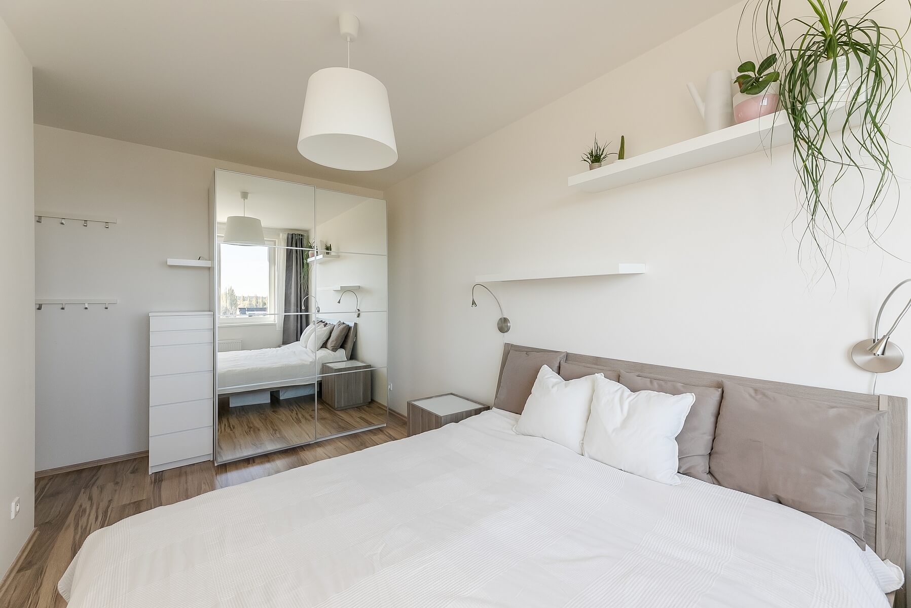 Moderní světlý byt s balkonem, výhledem na přírodní park a se 2 parkovacími místy, v klidné části Uhříněvsi a v docházkové vzdálenosti na vlak či autobus.