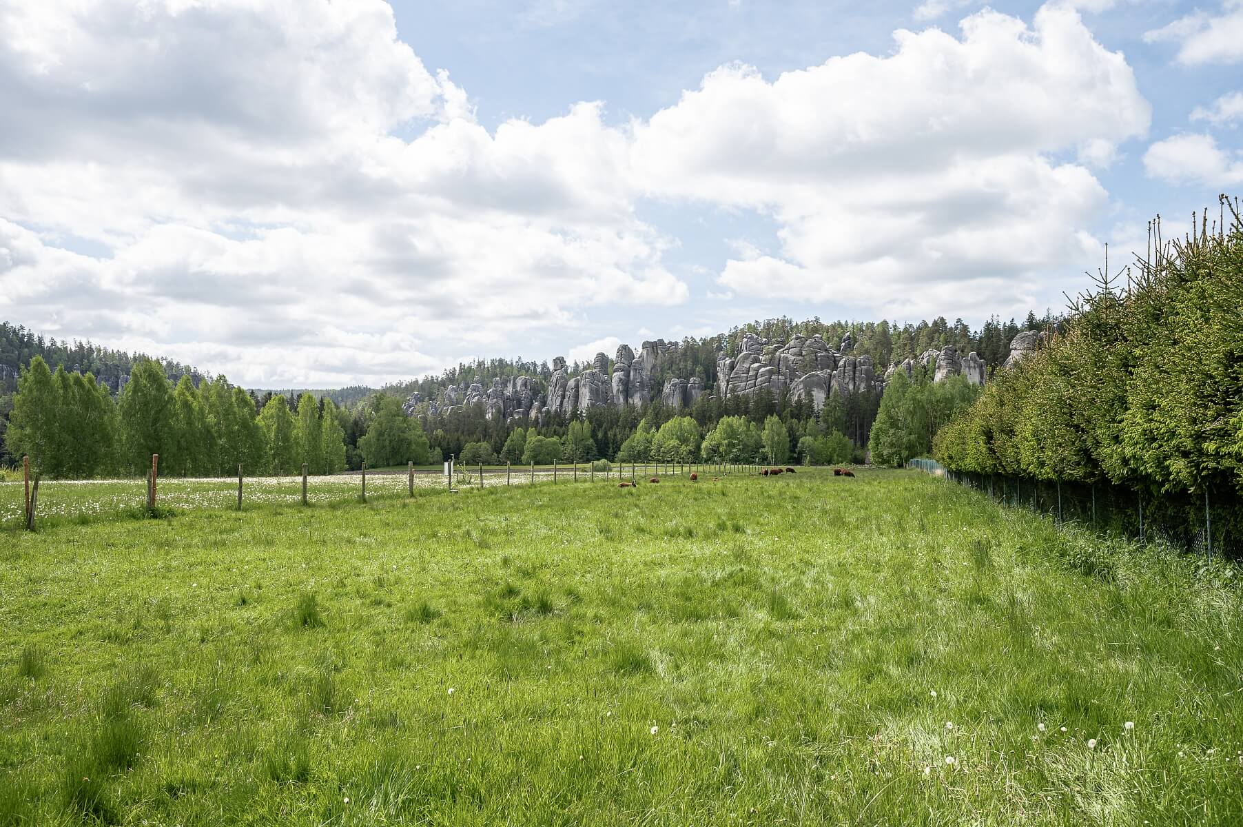 Soubor parcel o celkové rozloze 4 301 m2 se rozkládá na atraktivním místě v obci Dolní Adršpach blízko vstupu do unikátních Adršpašských skal, na něž je z pozemku přímý výhled.