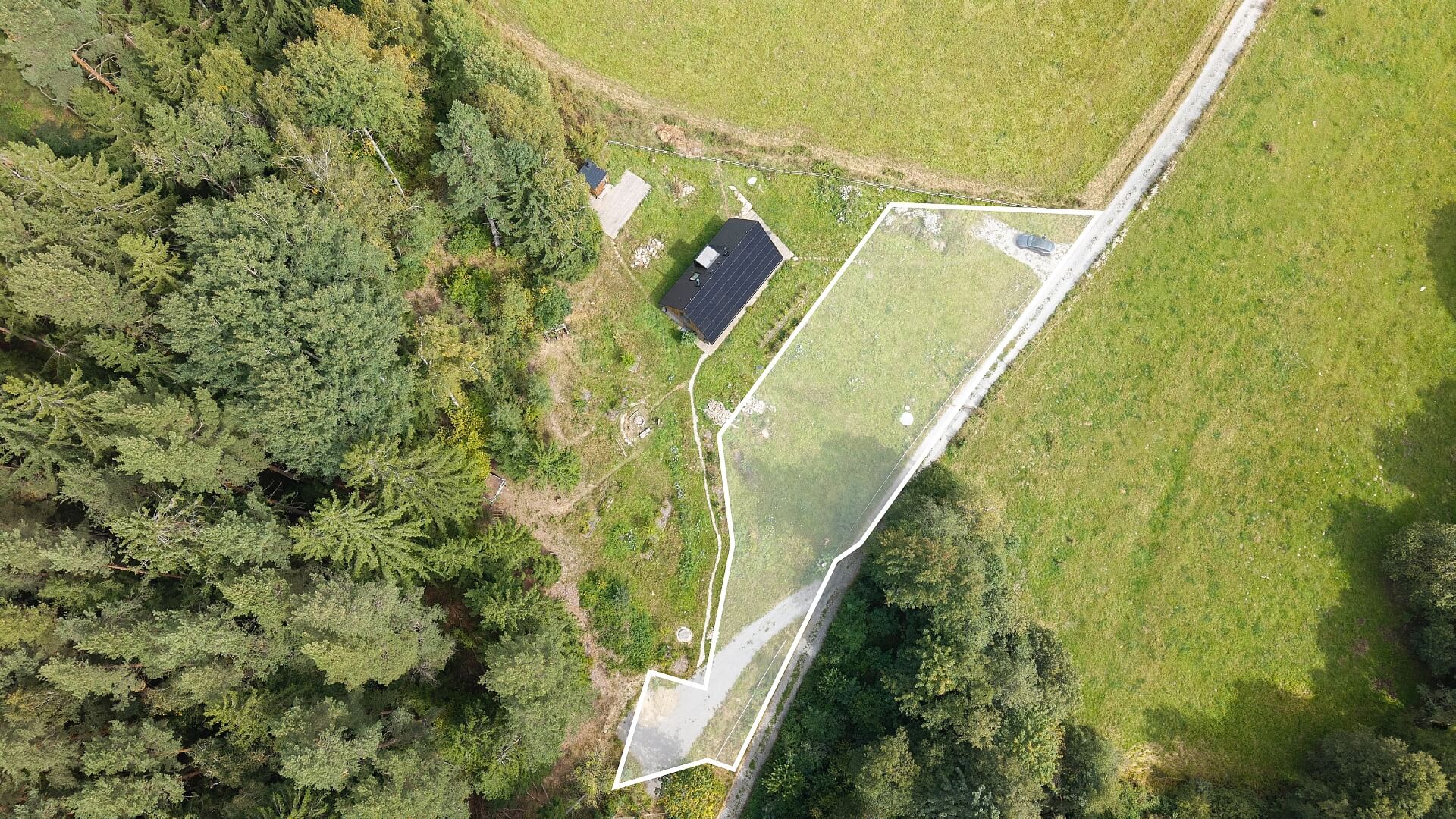 Pozemek je přístupný po zpevněné cestě, plocha je vhodná pro výstavbu soukromého rekreačního objektu nebo menšího apartmánu. K pozemku je již vydáno stavební povolení, může zde vzniknout dům v soběstačném ostrovním režimu, nebo s využitím inženýrských sítí, které jsou v dosahu (elektřina cca 300 m). Voda je řešena vlastní studnou, odpady domovní čističkou.