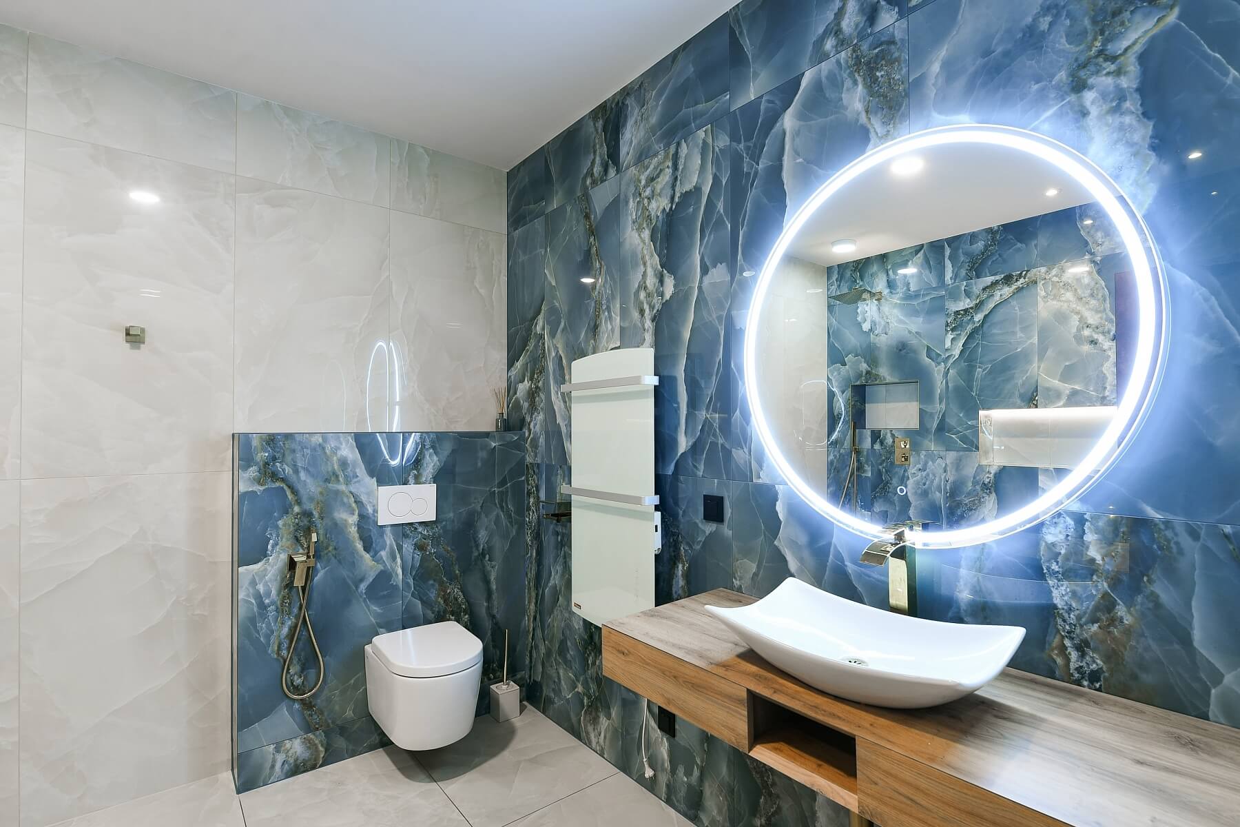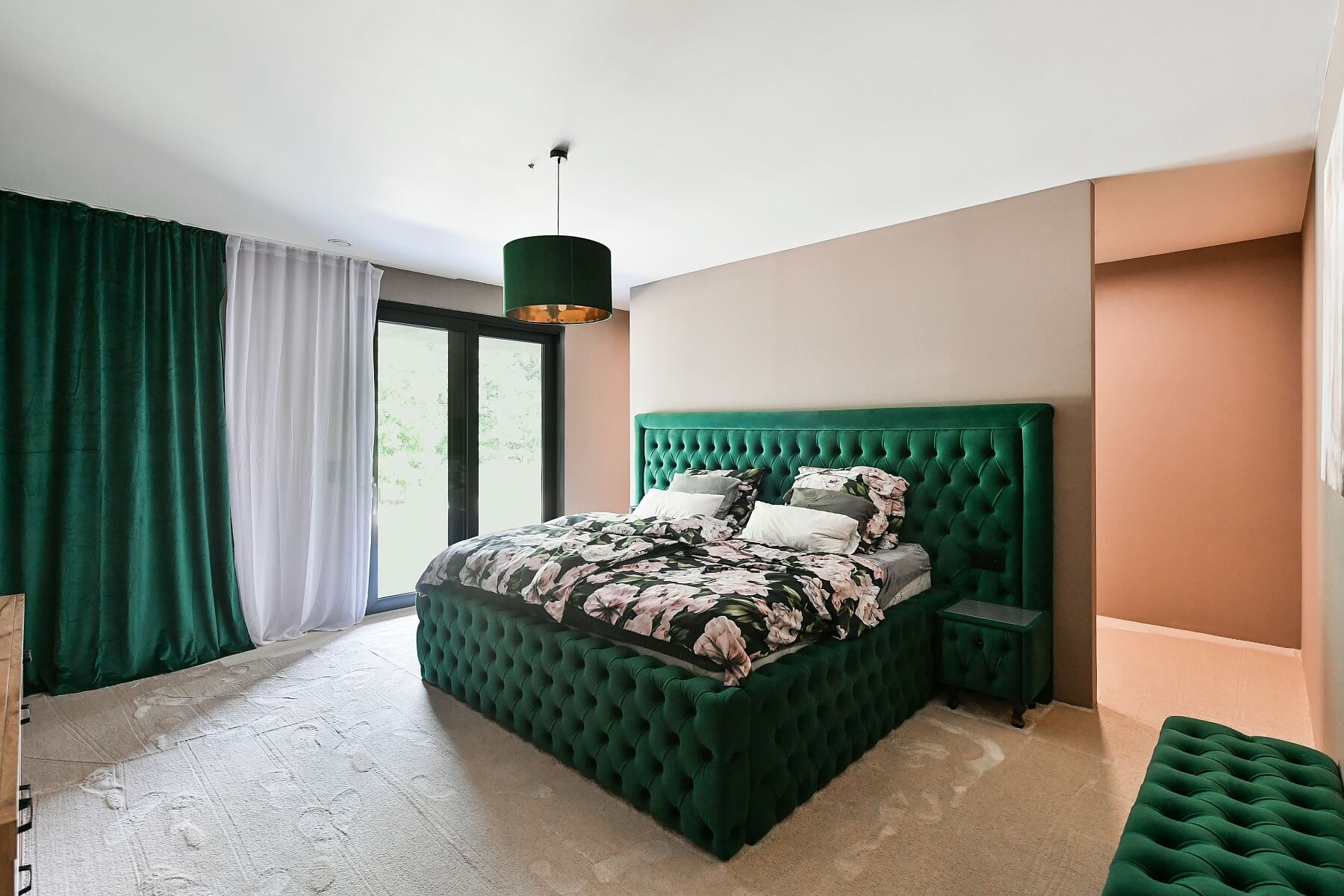 Praktické dispoziční uspořádání rozložené pouze v jedné úrovni poskytuje více než 50metrový obývací pokoj s přilehlou terasou, dále hlavní ložnici s velkou šatnou a vstupem na terasu, další 2 ložnice, pracovnu, koupelnu (velká vana i sprchový kout, WC, bidet), prostornou předsíň, samostatné wc a technickou místnost propojenou dveřmi s garáží.