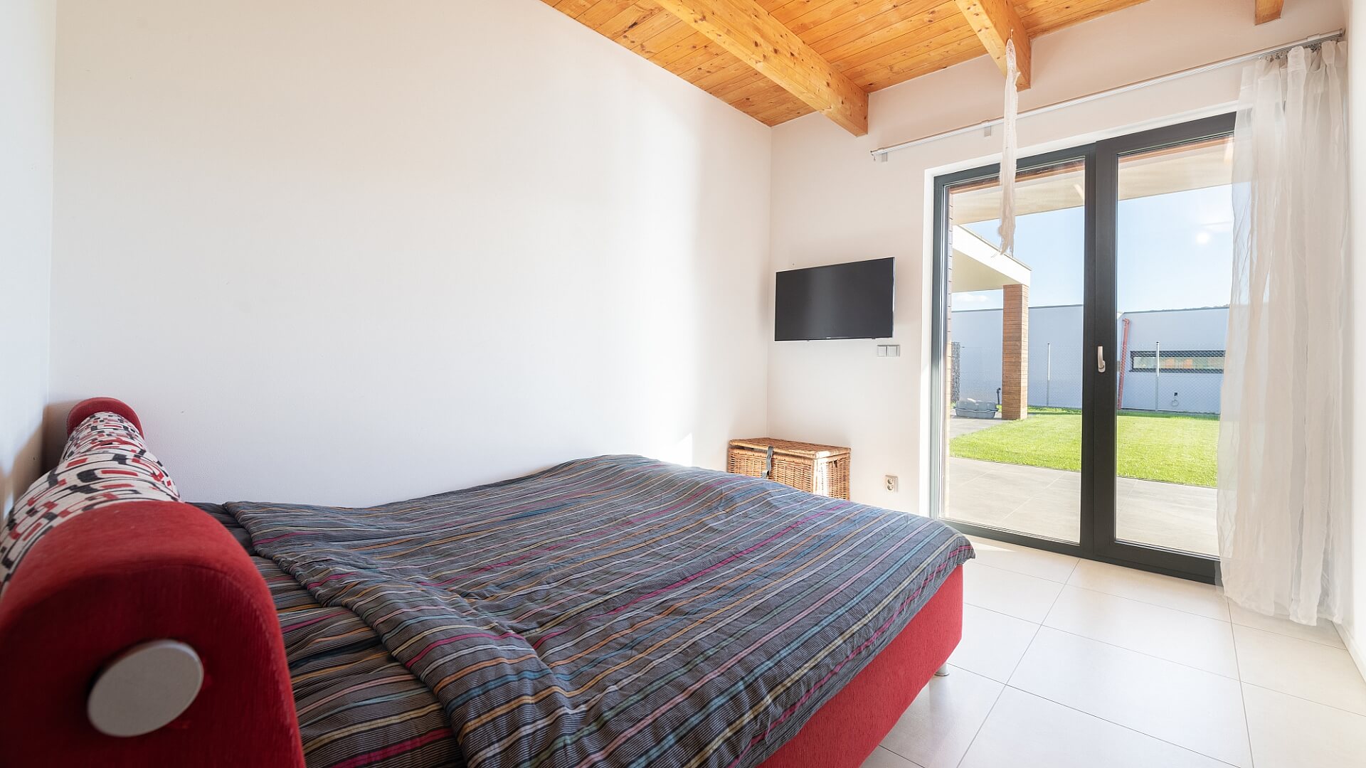 Moderní bezbariérový rodinný dům s venkovním bazénem, velkou slunnou rovinatou zahradou, vytápěnou dvojgaráží a možností přístavby stojí v obci Želešice na jižním předměstí Brna, v bezprostředním sousedství přírodního parku Bobrava.