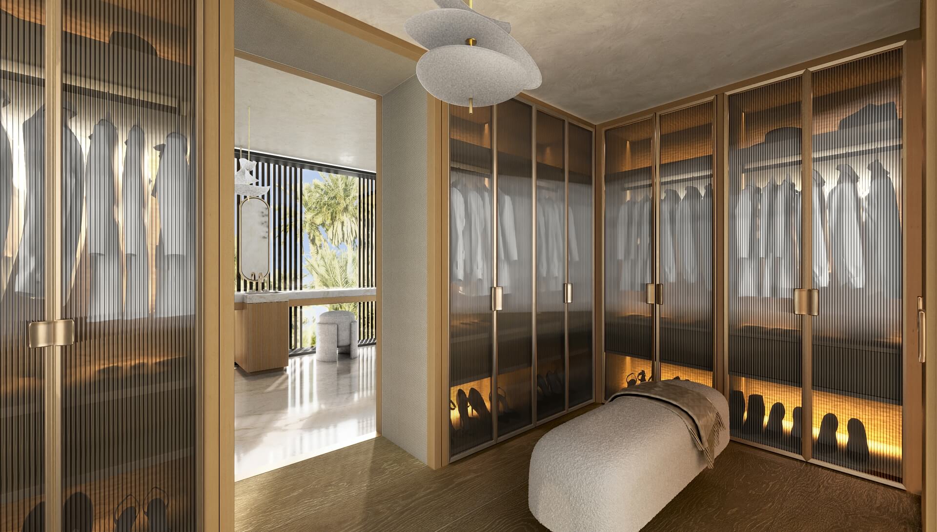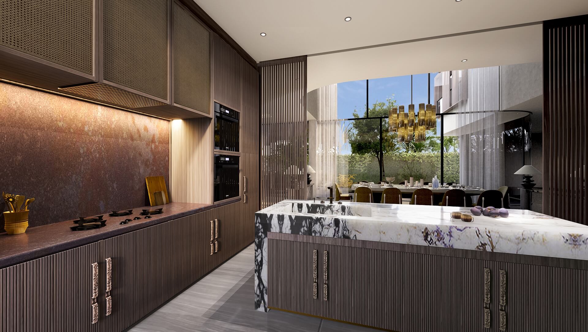 Vila je navržena v převážně otevřeném stylu, aby byla zaručena lehkost a vzdušnost, je rozdělena do dvou podlaží a zastíněné střešní terasy. V přízemí se nachází prostorná společenská zóna s obývacím pokojem, kuchyní a jídelnou, jejíž část je obložena celoplošnými skleněnými panely a která se otevírá na krytou terasu určenou ke stolování pod širým nebem. Ložnice a koupelny v patře zdobí luxusní materiály i vybavení. Soukromí zajišťují závěsy a žaluzie, které lze rozevřít, aby dovnitř proudilo slunce a čerstvý vzduch.
