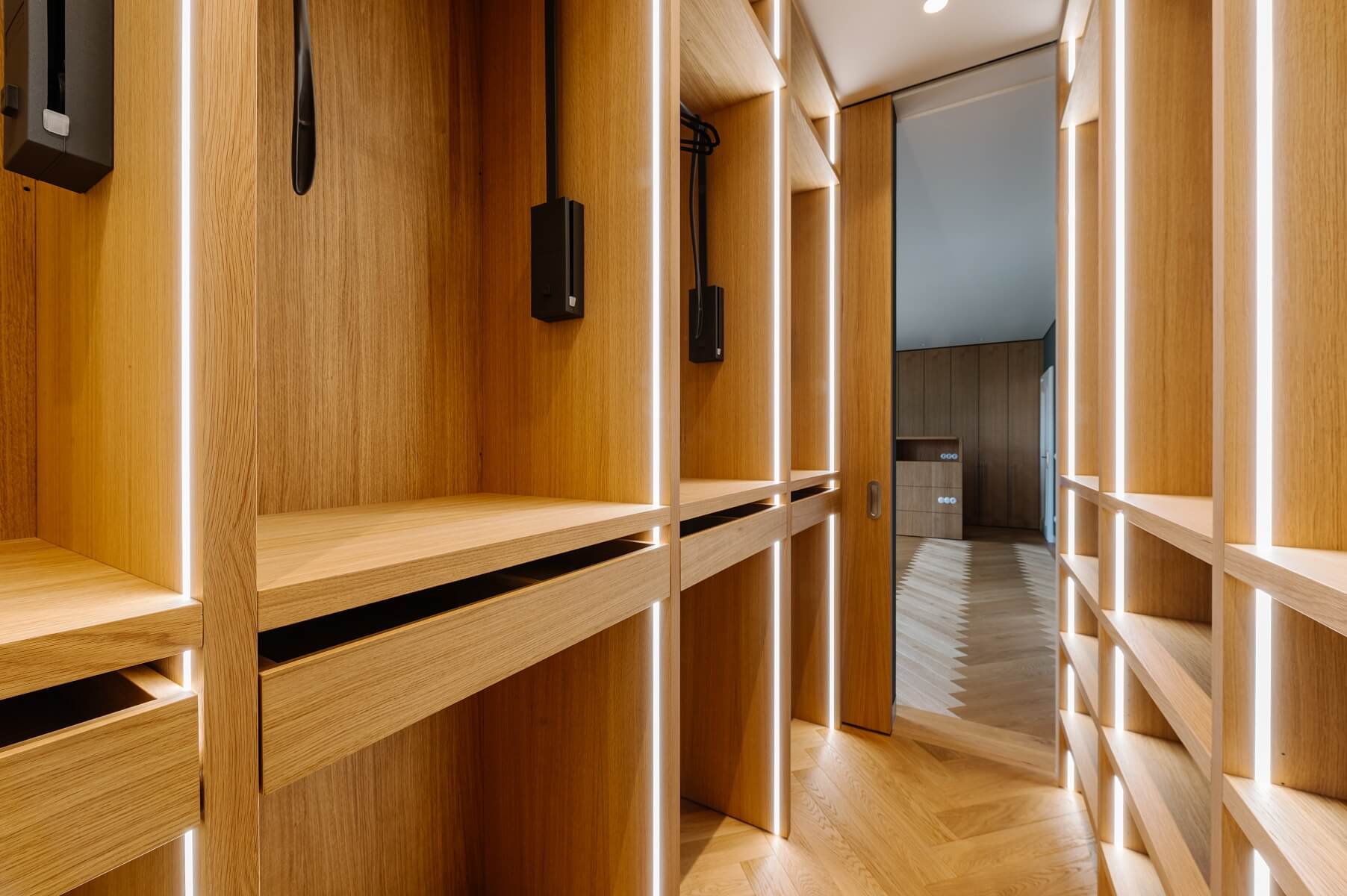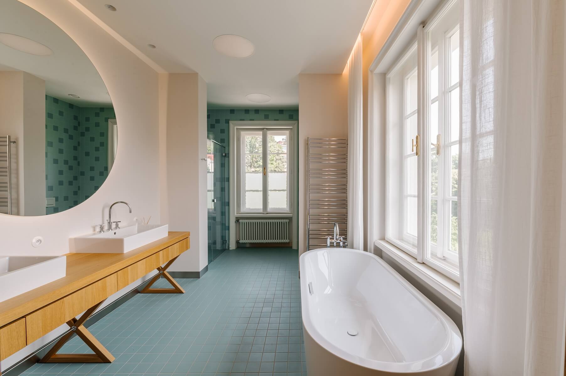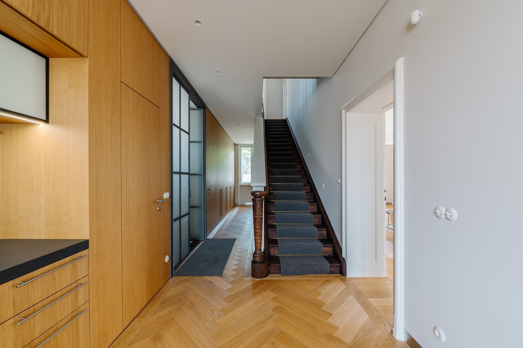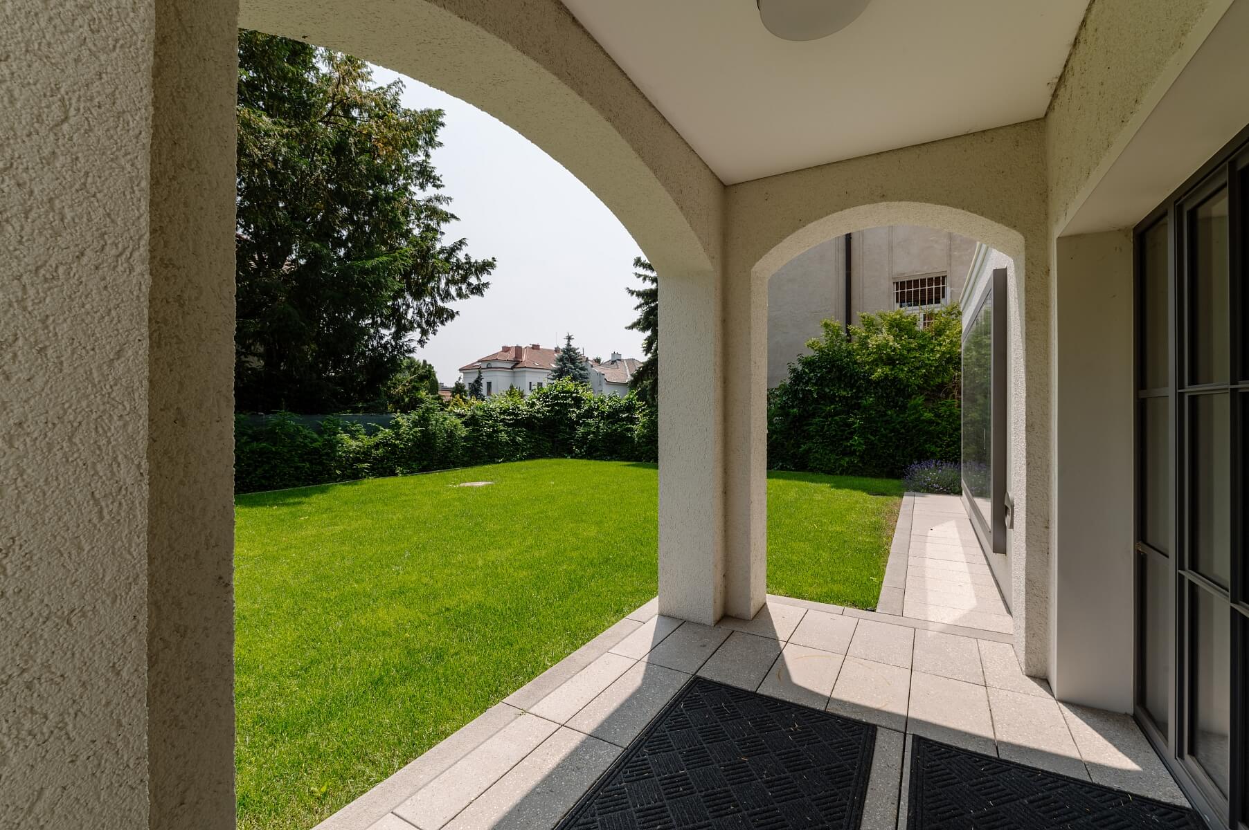 Čtyřpodlažní vila nabízí šest pokojů, čtyři koupelny a tři samostatné toalety. V přízemí se nachází vzdušná denní část – kuchyň, jídelna, obývací pokoj s krbem a vstupem na terasu. V patře je umístěna hlavní ložnice s en-suite koupelnou a šatnou, další ložnice a pracovna. V podkroví jsou dva pokoje, koupelna a herna. Suterén disponuje společenskou místností s přímým vstupem do zahrady, apartmánem pro hosty a variabilním prostorem pro wellness, kancelář nebo ateliér.