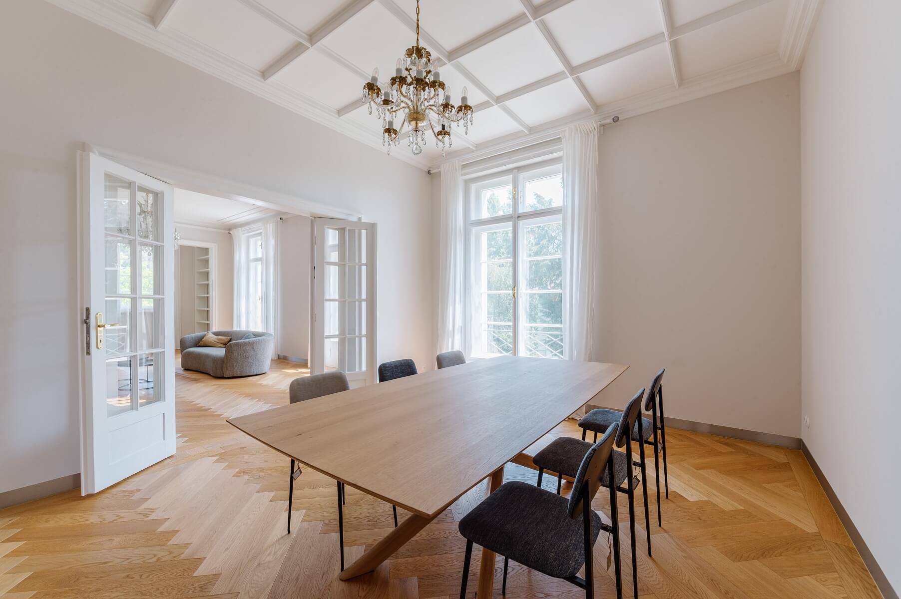 Nadčasová prvorepubliková vila z roku 1924 se nachází v jedné z nejelegantnějších částí Bratislavy, ve vilové čtvrti na ulici Timravina. Vila s užitnou plochou 450 m² prošla v roce 2023 kompletní rekonstrukcí pod dohledem renomovaného architekta. Spojení nadčasové architektury, moderních technologií a prestižní adresy vytváří z této nemovitosti jedinečné místo pro bydlení i reprezentativní účely.