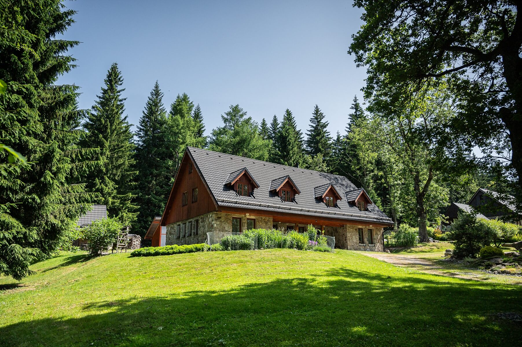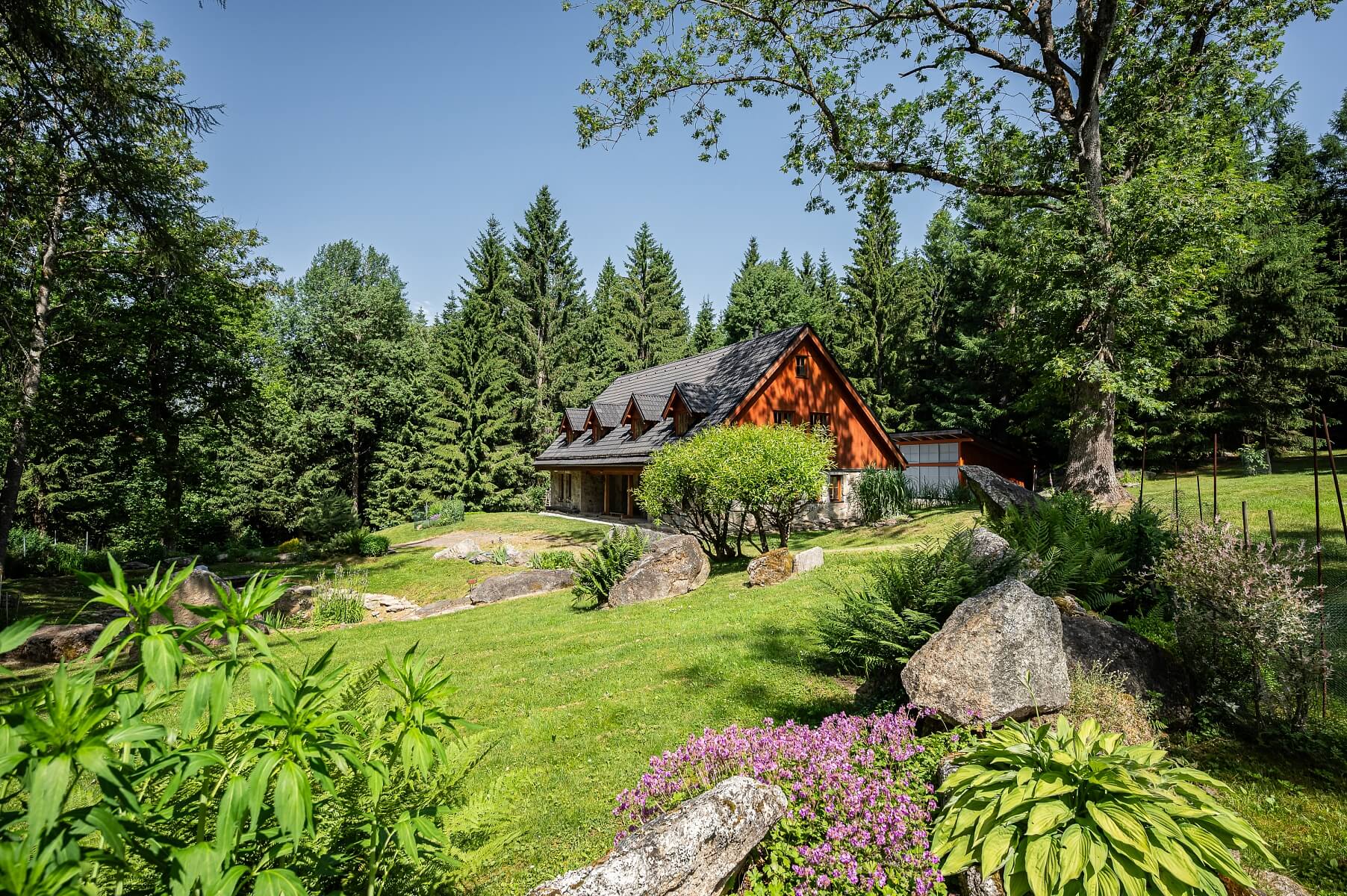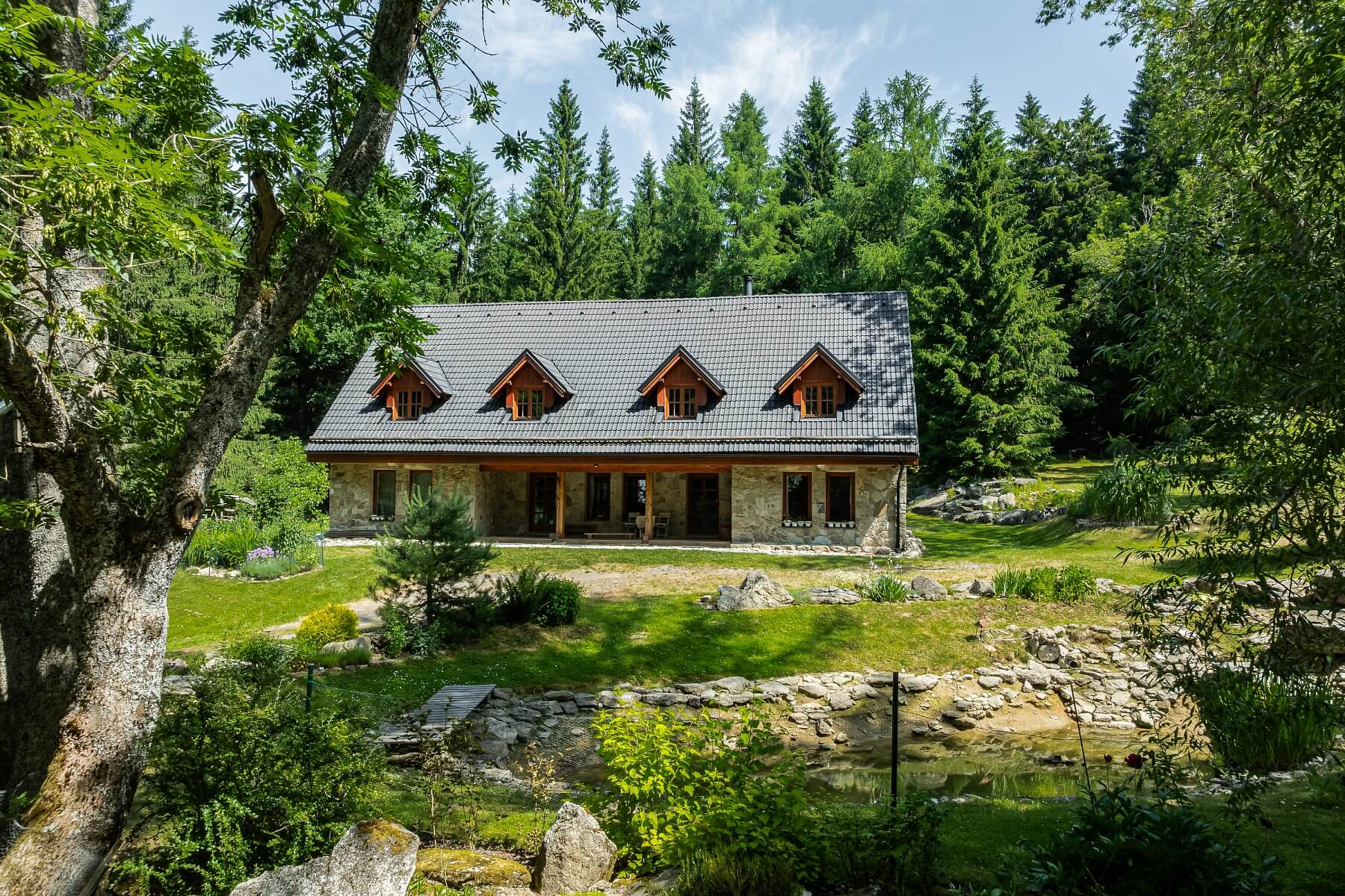 Dřevěná okna a obložení fasády přírodním kamenem zdůraňují tradiční horský styl domu, který se odráží také v interiérech. V přízemí a prvním patře je instalováno podlahové topení obsluhované tepelným čerpadlem, které lze ovládat dálkově. K vytápění slouží i krbová kamna Jotul. Zdrojem kvalitní pramenité vody je místní vydatný vrt s vlastní vodárnou, odpadní vody jsou řešeny jímkou o objemu 12 m3. Dům je monitorován kamerovým systémem, nechybí ani příprava pro zabezpečovací systém.