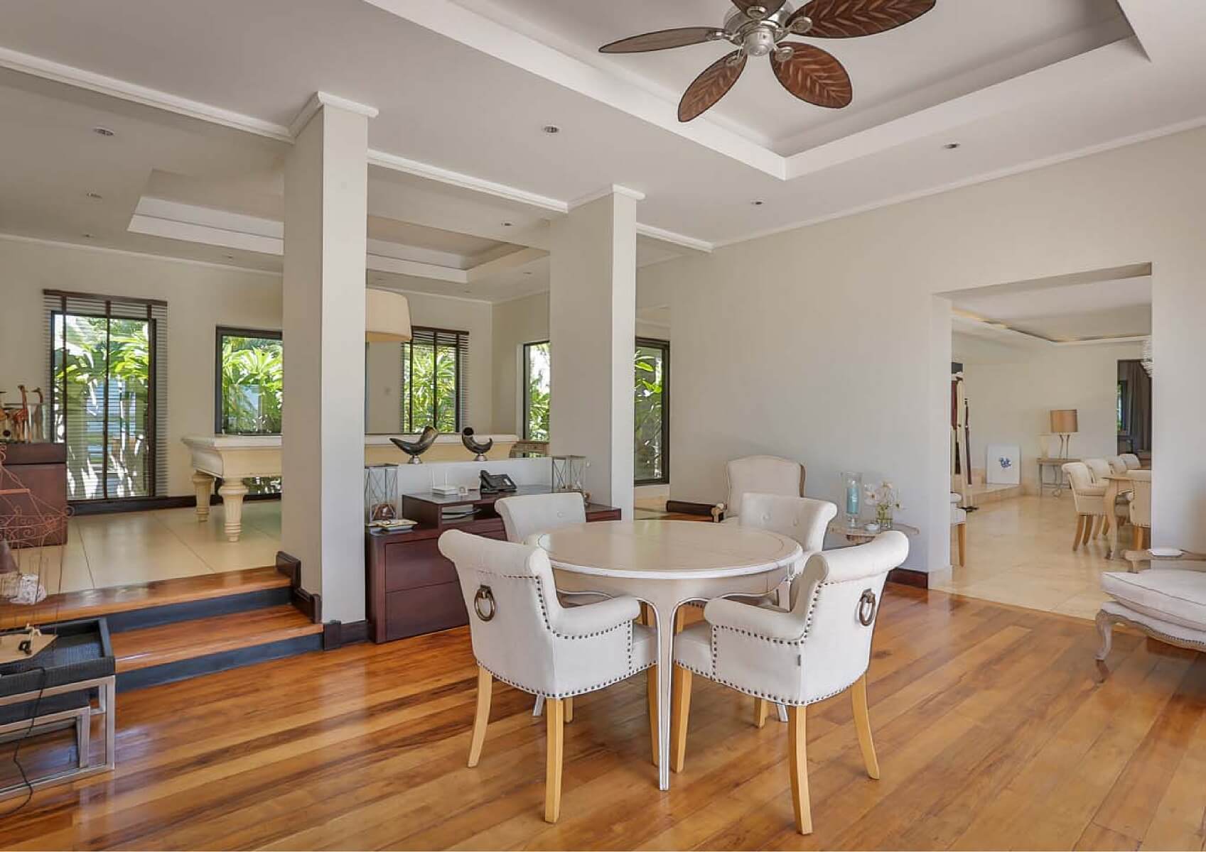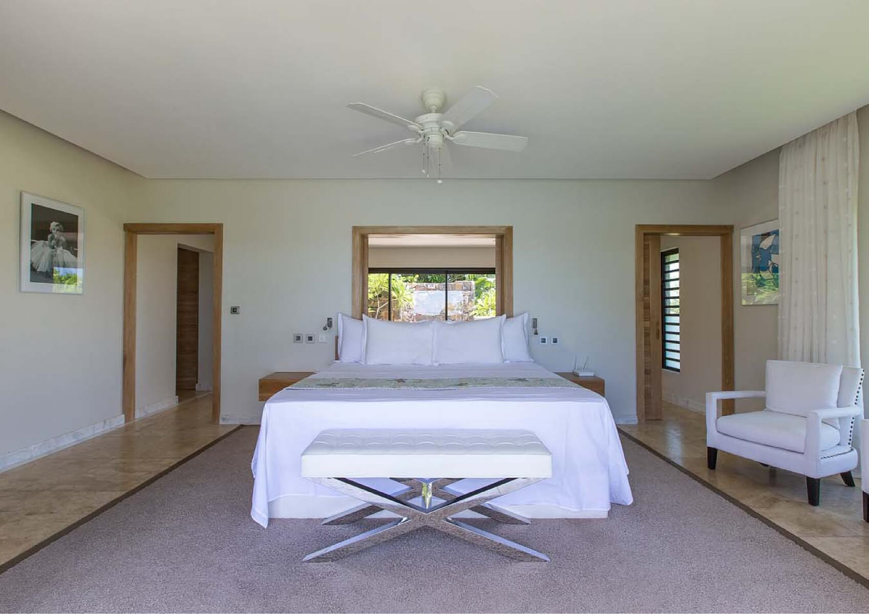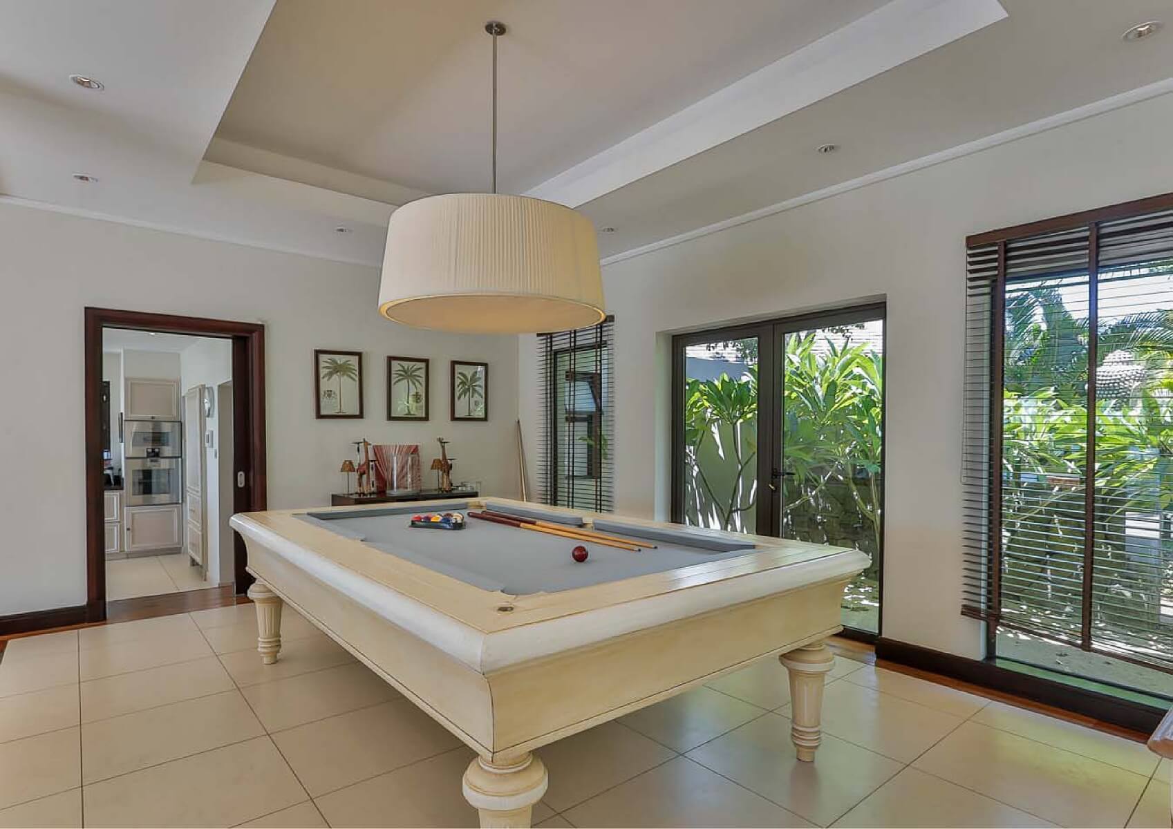 Úctyhodných 353 m² obytného prostoru poskytuje 4 prostorné, špičkově zařízené ložnice, 4 koupelny, pracovnu, společenskou místnost, obývací pokoj, jídelnu a kuchyni. Interiér je přirozeně propojen s venkovním terasami, zahradou i velkým bazénem.